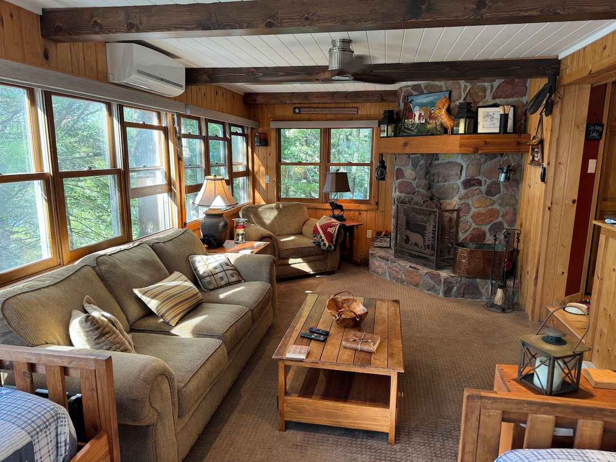 Isa itong kakaibang maliit na cabin sa Flambeau River sa labas lang ng Ladysmith, WI (flambeau translastes to flaming torch) Ito ay isang malinis na lugar na may kaakit - akit na kagandahan. Mayroon itong kusinang kumpleto sa kagamitan, kalan at refrigerator. Ang gas fireplace ang sentro ng sala. Mag - snuggle sa sofa o recliner, i - on ang fireplace, at magrelaks. May isang silid - tulugan na may memory foam mattress. Isang loft na may couch na pangtulog. Mga libreng amenidad, kabilang ang paglilinis. Bawal ang mga alagang hayop at bawal ang paninigarilyo anumang oras.