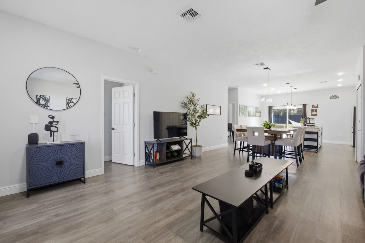 Magrelaks kasama ng buong pamilya sa mapayapang lugar na matutuluyan na ito. Bagong - bagong build sa Highlands South area ng Inverness, na may 3 silid - tulugan at 2 banyo. May ensuite bathroom na may walk in shower ang pangunahing kuwarto. Ilang minuto mula sa downtown Inverness, shopping, restawran, paglulunsad ng bangka, parke at ang Withlacoochie walk ride trail. Perpektong paraan para sa ilang araw man o karanasan sa snowbird. Ang alagang aso ay magiliw, gayunpaman, hinihiling namin ang paunang pag - apruba. Bawal manigarilyo o mag - Vaping sa lugar. Walang party.