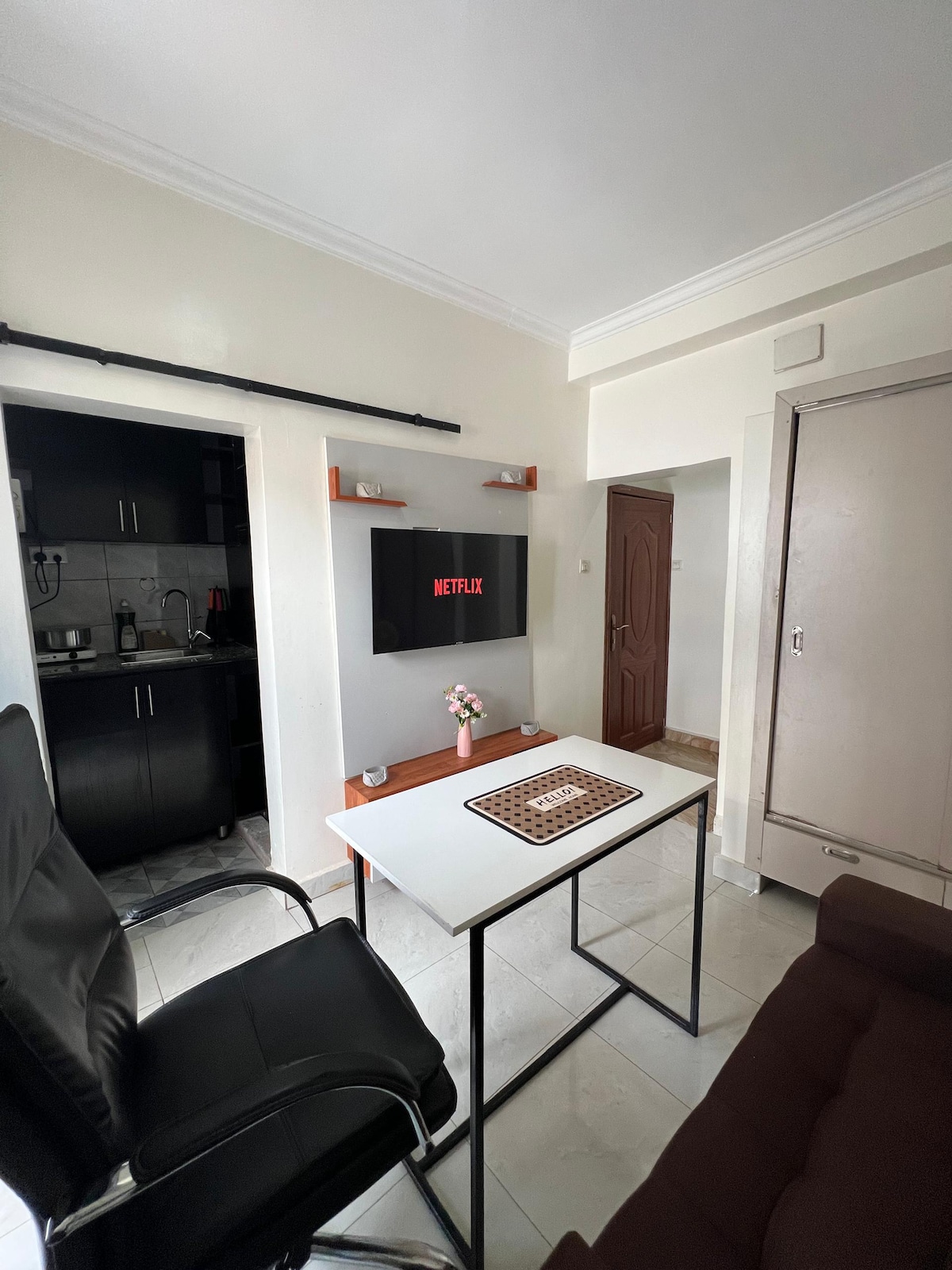 Welcome to our luxury 1BR Airbnb in Rebero, Kigali, just 20 minutes from the airport. Enjoy modern open-plan living, a king bedroom, a private terrace with city views, pool, gym, utilities, WiFi, TV, security, and garage. Weekly housekeeping included. Optional laundry and car rental. No pets or smoking. Long-term stay available: open for discussion Fully Furnished Deposit: 1 month's rent (3 - 6 months lease or more)