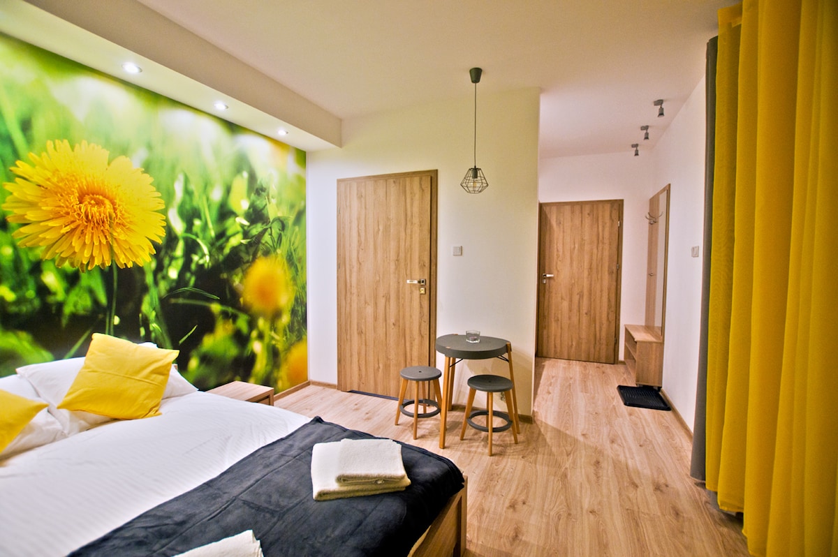 Magpahinga at magrelaks, ito ang pinakamagandang opsyon para sa mga business traveler at higit pa: Workation - Business Travel - Work&Stay - Single Trip - Corporation - Home Office - Delegation - Business. Green area ng Bielsko-Biała, sa paanan ng Szyndzielnia at Dębowiec, na perpekto para sa 1–2 tao – may air conditioning, balkonahe, kitchenette, Smart TV, wifi, 1 parking space, mga hiking trail, bike trail, gondola train, at sentro ng lungsod. Makakapag-check in nang mag-isa anumang oras.