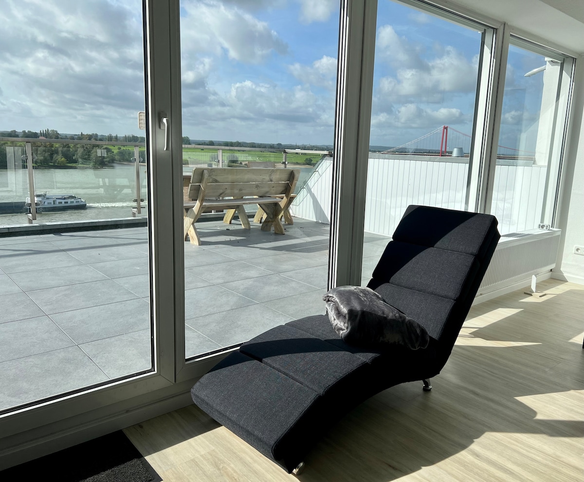 Eksklusibong PANORAMA ng dream loft sa Lower Rhine. Dito hindi malilimutan ang iyong pamamalagi kung bibiyahe ka para sa dalawa o para sa negosyo. Ang matutuluyang bakasyunan ay nasa gitna ng Emmerich am Rhein. Sakto sa promenade ng Rhine. ★ 42m² apartment para sa 1 -2 tao ★ Premium Queen Bed & Wellness lounger ★ Kusina na may upuan ★ Workspace na may high - speed na Internet ★ 22 m² roof terrace na may tanawin ng Rhine ★ Air conditioner at sun shade ★ Smart TV