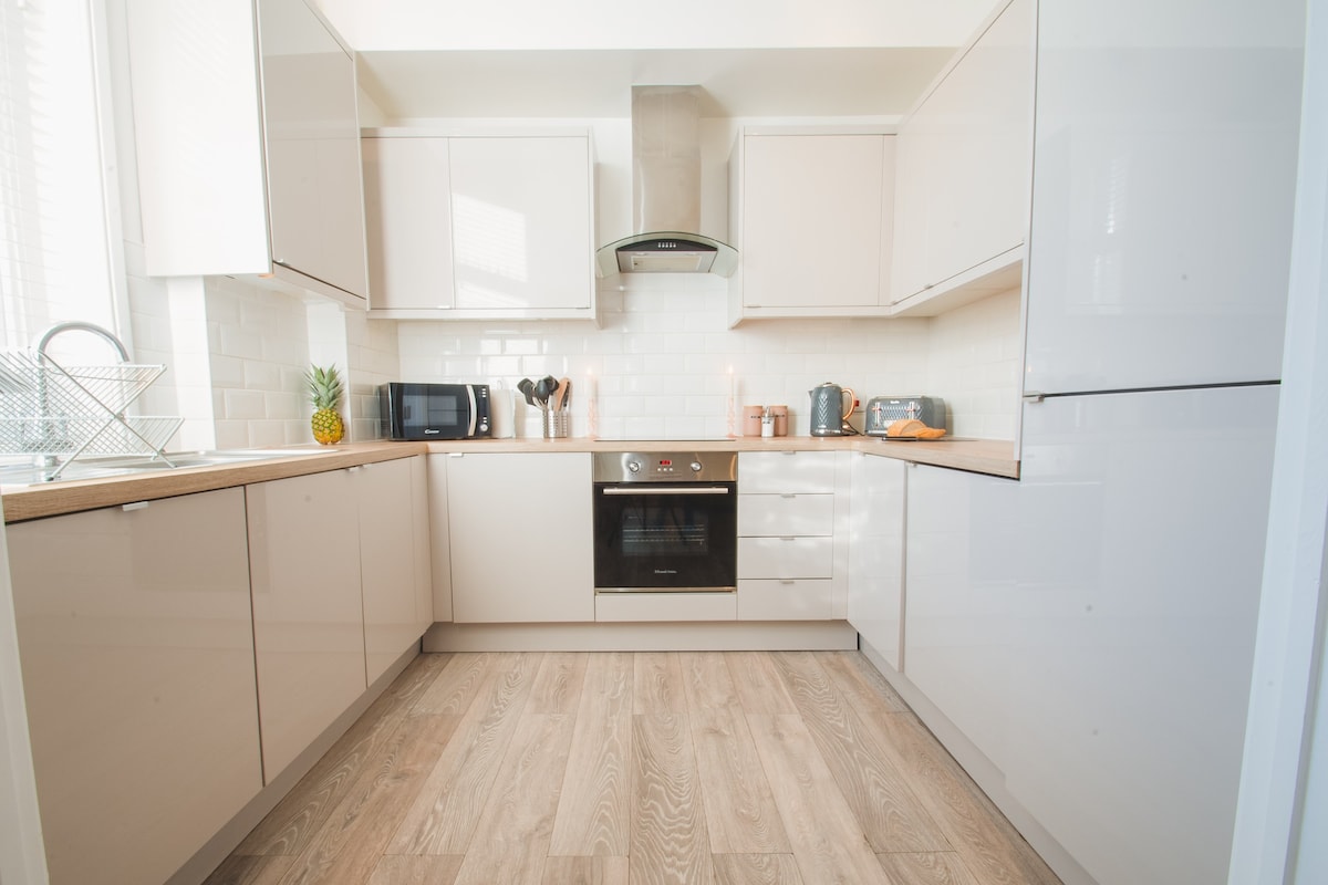 Isang minutong lakad lang ang modernong apartment mula sa mga Blue Flag beach ng Bournemouth at nasa gitna ito ng bayan kung saan may mga tindahan, restawran, at amenidad sa malapit. Madaliang makakapunta sa BH2 Leisure Centre, mga harding nanalo ng parangal, at iconic na pier. Nasa sentro ito kaya asahan ang ingay ng lungsod (may mga earplug). Nasisiyahan ang mga bisita sa flexible at ligtas na sariling pag‑check in sa pamamagitan ng pagkuha ng mga susi sa lokal na tindahan gamit ang isang beses lang gagamiting code.