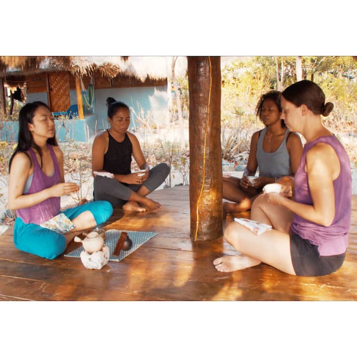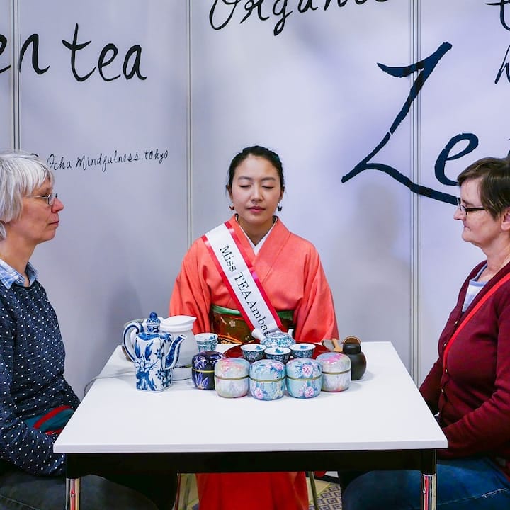 Mindfulness na seremonya ng tsaa sa isang silid‑tsaa sa kalikasan