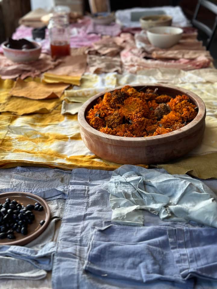 Mga tela ng Tiñe na may mga natural na tina