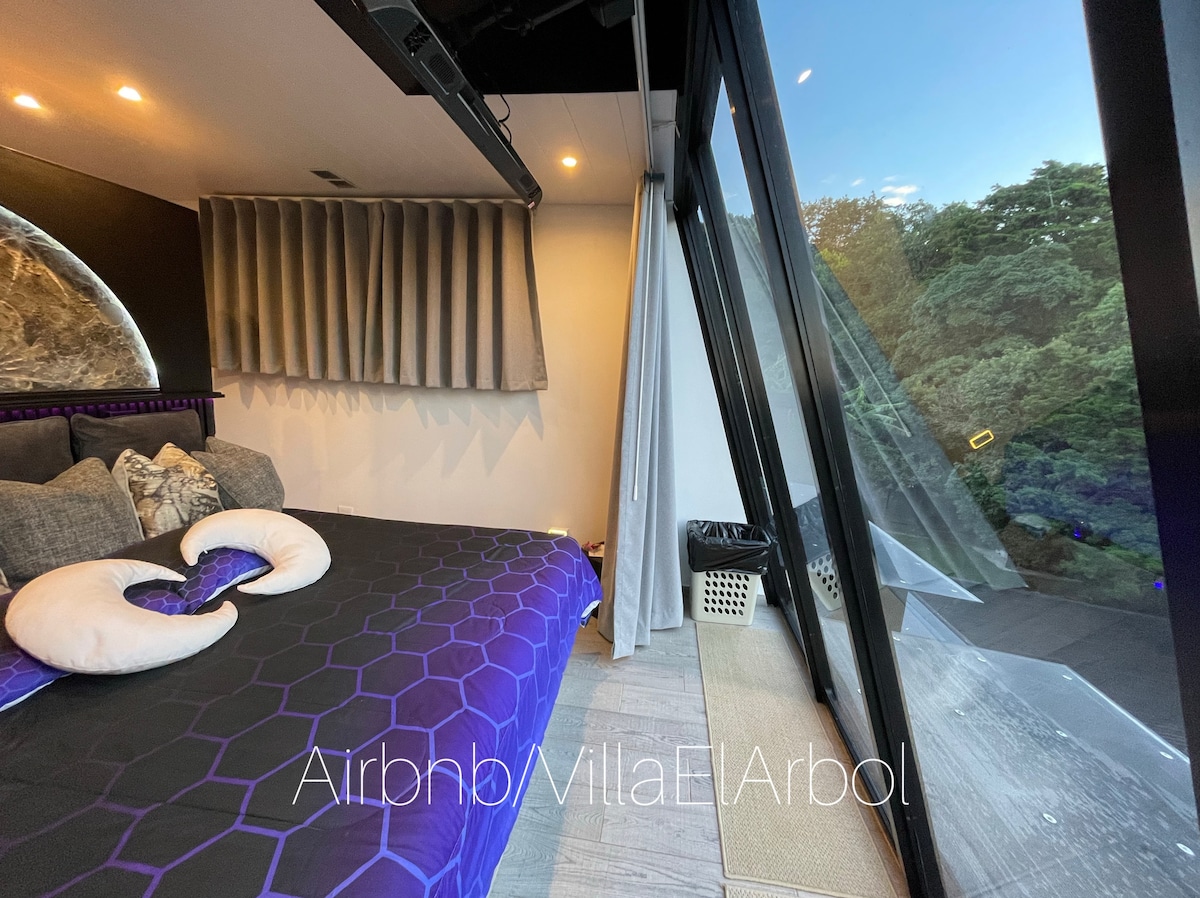 Isang kontemporaryong arkitektura at karanasan sa disenyo ang Nebulae Loft na ginawa para sa mga bisitang gustong mamalagi sa tuluyan na kakaiba, komportable, at may sariling dating na 20 metro lang ang layo sa SJO airport. Napapalibutan ng mga puno ang loft na may dalawang kuwarto, dalawang banyo, sala, at kusinang kumpleto sa gamit. Sa labas, may dalawang balkonahe, terrace na may firepit, jacuzzi, at lugar para sa BBQ na mainam para sa paglilibang at pagbabahagi. Pinapayagan ang mga kaganapan nang may paunang pahintulot. Mga espesyal na kaganapan sa Nebulae/Laureal.