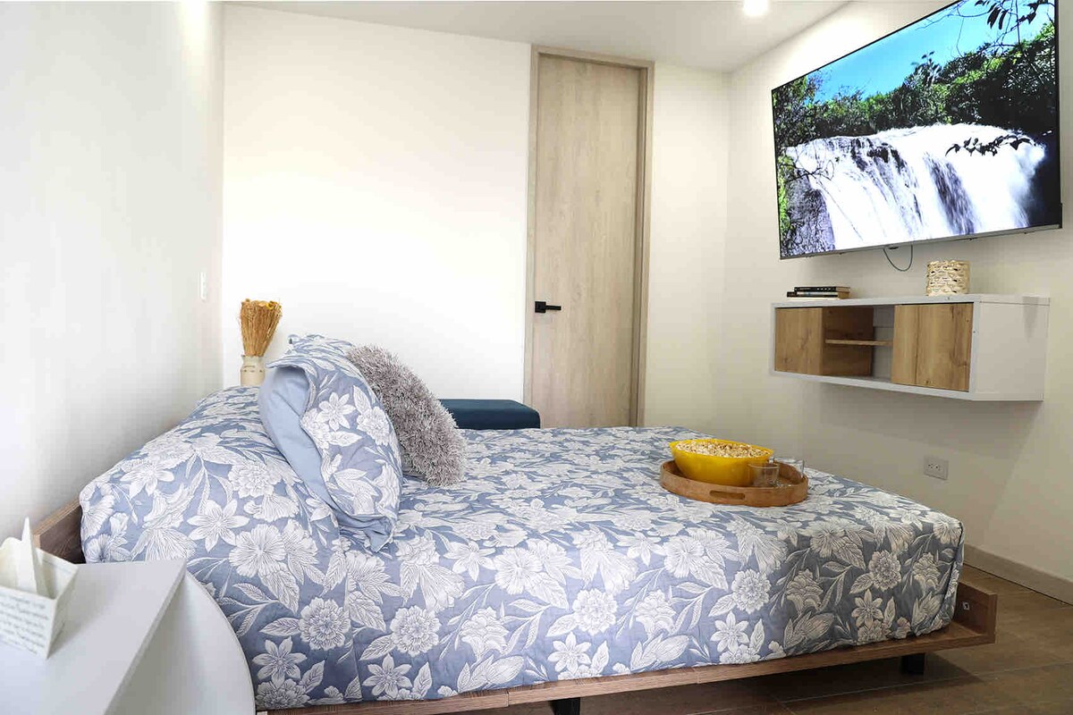 Mag-enjoy sa natatanging karanasan sa komportable at kumpletong apartment na ito, na perpekto para sa mga pamilya, magkasintahan, o biyaherong gustong tuklasin ang ganda ng southern Aburrá Valley. Ilang hakbang lang mula sa Parque de Sabaneta, at nasa gitna ka na ng isa sa mga pinakapamana, pinakaligtas, at pinakamagandang lugar sa metropolitan area ng Medellín. Maganda ang lokasyon nito dahil malapit sa lahat ng kailangan mo, gaya ng pampublikong transportasyon, mga pamilihan, at mga lugar ng kultura, at maganda ang kapaligiran dito na katangian ng Sabaneta.