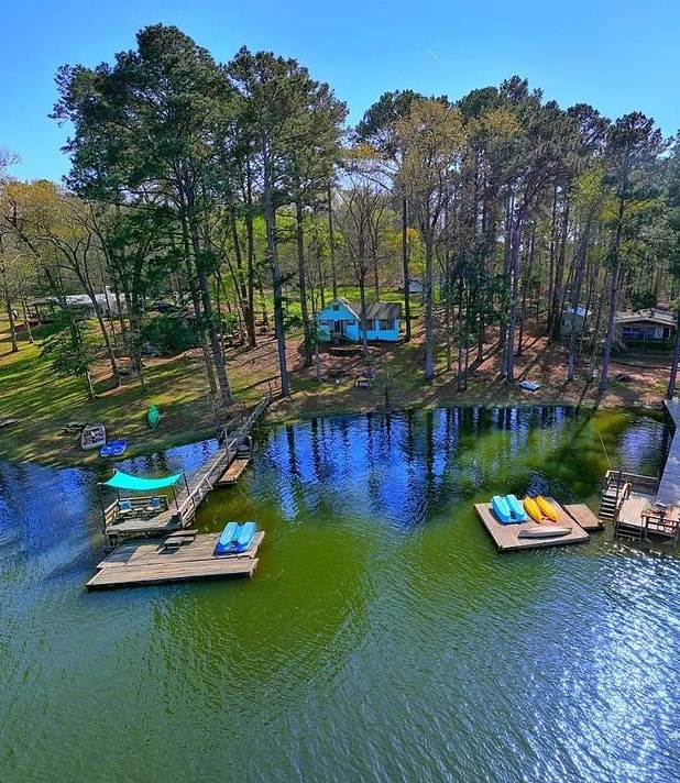 Pumunta sa 350 talampakan ng pribadong waterfront na may mga bukas na tanawin ng Toledo Bend. Simulan ang iyong araw sa pamamagitan ng kape sa takip na patyo, pagkatapos ay pumunta sa isa sa aming apat na kayaks - o sumakay sa rowboat - para sa isang araw sa lawa. Ang bunkhouse ay nagbibigay sa lahat ng espasyo upang kumalat; ang firepit at beach area ay ilang hakbang na lang ang layo. Mabilis na 2 minutong biyahe ang paglulunsad ng bangka. Sa mga tindahan, gas, at pamilihan sa malapit, magkakaroon ka ng lahat ng kailangan mo para sa isang kaaya - ayang bakasyunan sa tabing - lawa.