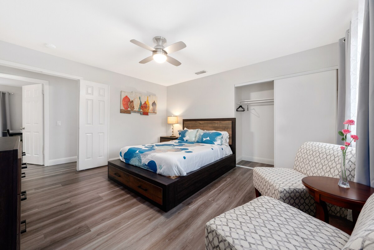 Ipaparamdam sa iyo ng aming tuluyan na hindi ka na umalis ng bahay. Maraming lugar para sa malalaking pamilya o grupo ng trabaho para makapag - enjoy sa magandang pamamalagi. Nagtatampok ang aming tuluyan ng 5 silid - tulugan, 3 paliguan, at malaking magandang open floor plan na pampamilyang lugar. Nilagyan ang bawat kuwarto sa bahay nang may kaginhawaan para mapaganda ang iyong pamamalagi. Ang aming tuluyan ay mayroon ding magandang bakuran para lumabas, umupo at magrelaks pagkatapos ng mahabang araw. Malapit sa mga restawran, shopping at marami pang iba!