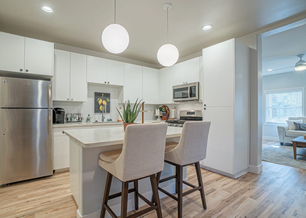 Tuklasin ang pinakamagandang pamumuhay sa lungsod sa aming kamangha - manghang 2 - bedroom, 2 - bathroom apartment sa makulay na sentro ng lungsod ng Sacramento. Nag - aalok ang modernong kanlungan na ito ng naka - istilong retreat na ilang hakbang lang mula sa Golden 1 Center at convention center. Tuklasin ang isang mundo ng mga kasiyahan sa pagluluto at nightlife na may mga naka - istilong coffee shop, restawran, at bar sa iyong pinto. Masiyahan sa komportableng pamamalagi na may mga amenidad tulad ng air conditioning, kumpletong kusina, at libreng WiFi. Perpekto para sa mga pamilya o grupo, nagbibigay ang apartment na ito ng