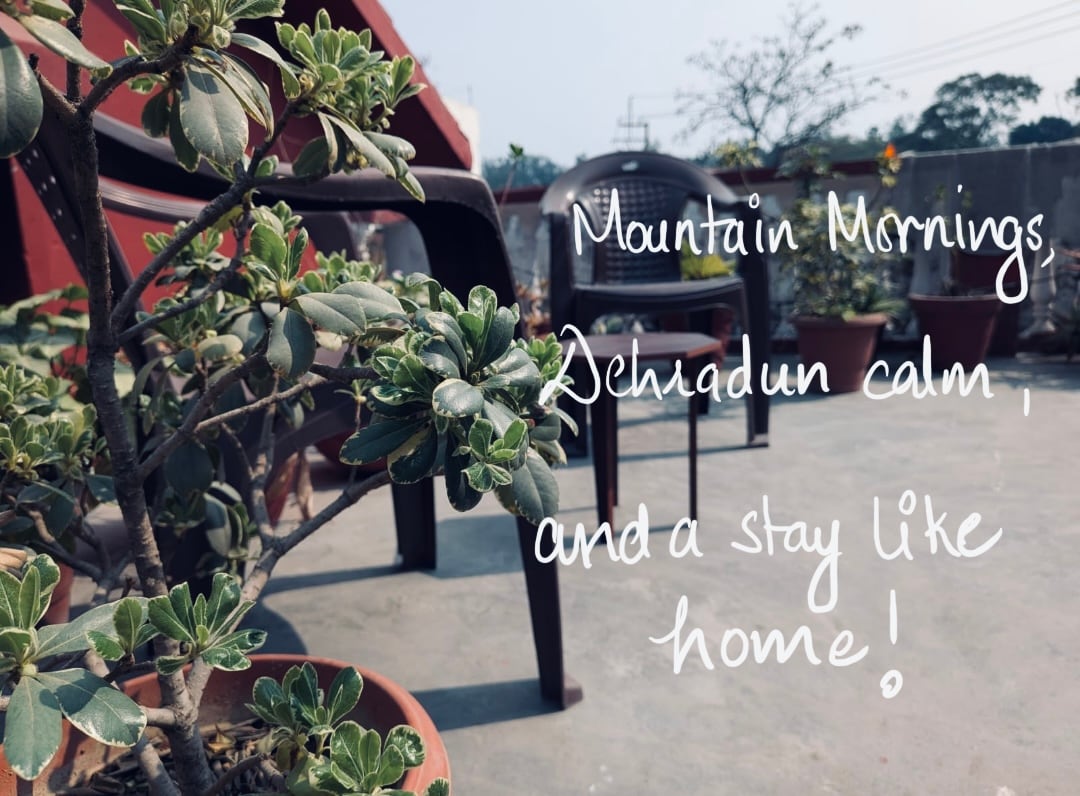 Gusto mo ba ng sariwang hangin at luntiang kapaligiran? Maligayang pagdating sa aming Homestay. Family friendly, kids friendly pati na rin pet friendly. Linisin ang kuwartong may nakakabit na kusina at banyo,isang sitting area na may hardin. Nagbibigay din ng komplimentaryong almusal at wifi. Wala pang 1 km ang layo ng medical shop, groceries, restaurant, at ospital. Ang Buddha temple ay 1.5 km lamang ang layo habang ang Graphic Era ay nasa maigsing distansya. AngDehradun ISBT ay 3 km at ang istasyon ng tren ay 7 km ang layo. 42 km ang layo ng Mussorie.