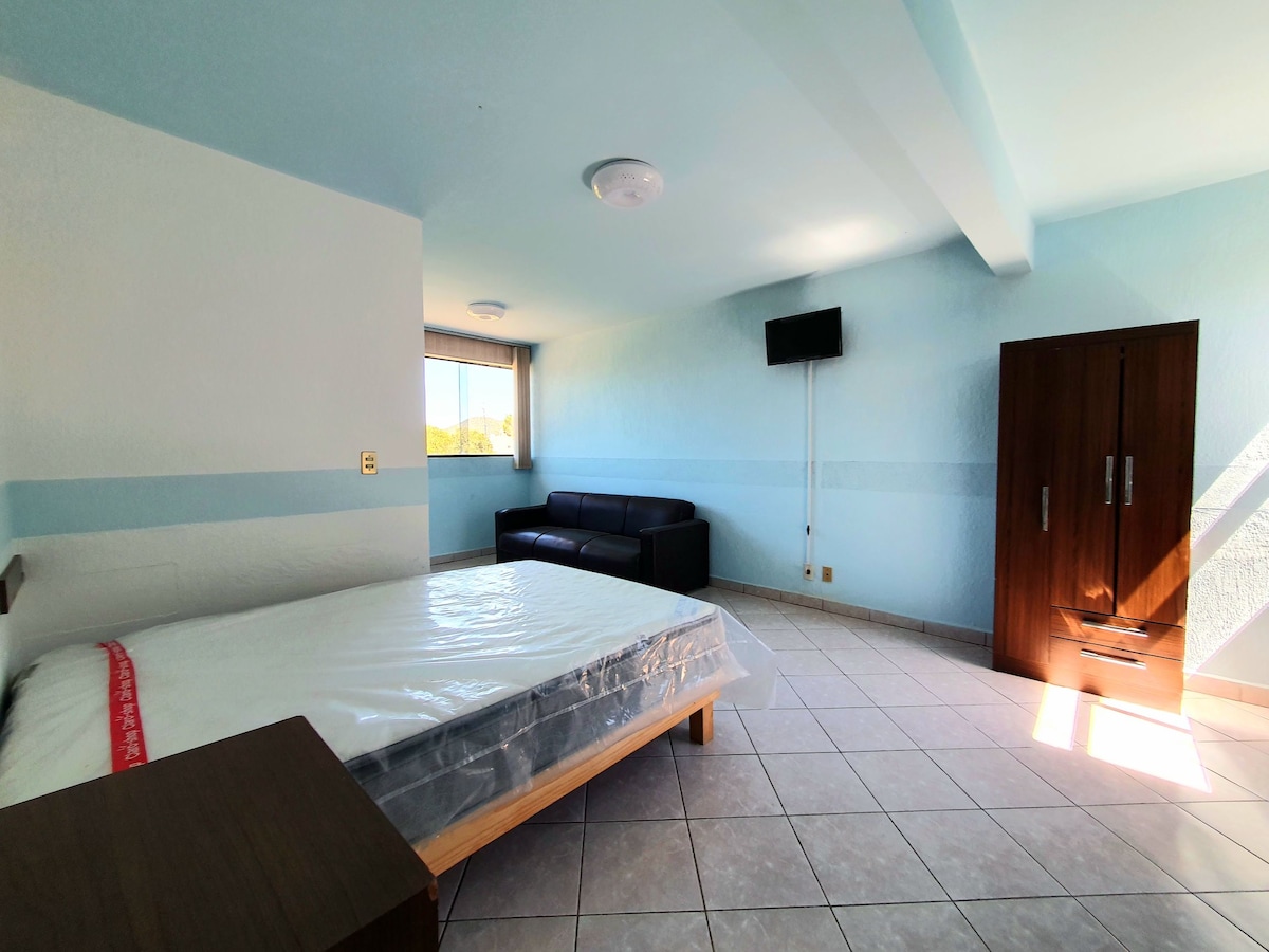 Magandang apartment na may muwebles ilang hakbang mula sa HyG hotel. Mayroon itong dalawang komportableng kuwarto, sala, silid‑kainan, kumpletong banyo, service patio, at masusing paglilinis. Magrelaks, ligtas ang sasakyan mo sa sariling parking lot, may bubong at dalawang hakbang mula sa pinto ng pasukan. Madali nang magagamit dahil sa electronic veneer—hindi na kailangang magdala ng mga susi! Bukod pa rito, magkakaroon ka ng service patio na may awtomatikong washing machine para sa iyong kaginhawaan. Halika at hayaan ang iyong sarili na mabigla!