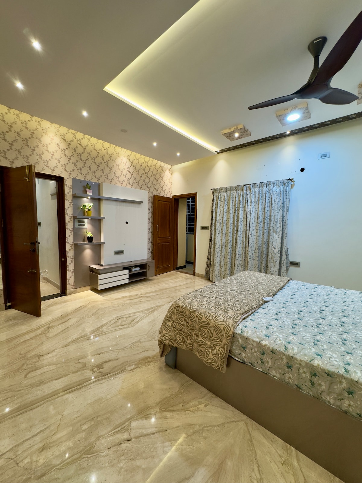 Maligayang pagdating sa isang premium na 1BHK na idinisenyo para sa mga mag - asawa at sinumang gustong magregalo sa kanilang sarili ng marangyang staycation malapit sa Manyata Tech Park. Maingat na pinangasiwaan gamit ang masaganang boho aesthetic, mainit na ilaw, at eleganteng dekorasyon, hindi lang pamamalagi ang Amavi: karanasan ito. Nagpaplano ka man ng romantikong bakasyon, nagdiriwang ng espesyal na okasyon, o simpleng pag - aalaga sa sarili, ginagawa ang tuluyang ito para gawing espesyal ang bawat sandali.