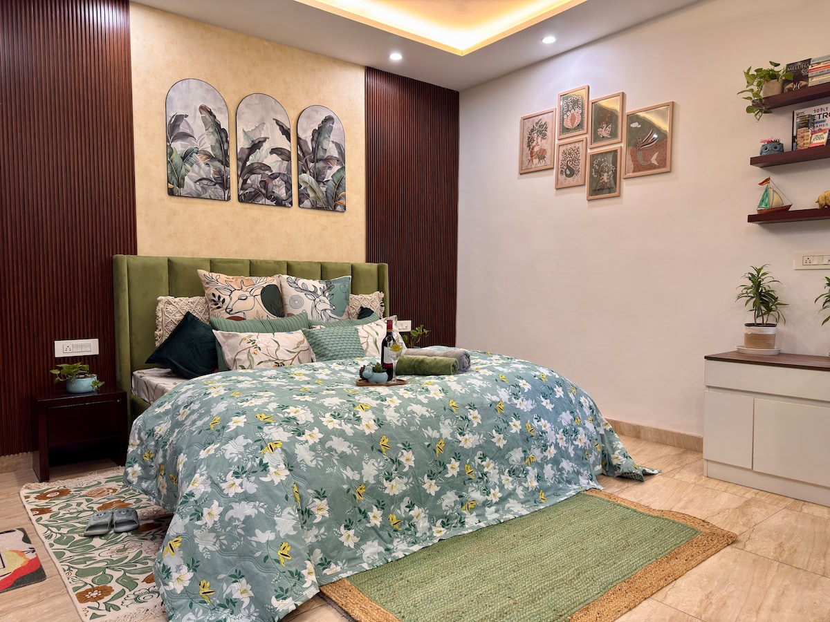 Ālaya | Buong Pribadong Palapag na may 2 Marangyang Kuwarto at Patyo na May Sikat ng Araw | Sector 42 Isipin mong mayroon kang buong pribadong palapag para sa sarili mo, na nakatago sa ika-2 palapag (naa-access sa pamamagitan ng hagdan; walang elevator) sa isang tahimik na residensyal na kapitbahayan. Pumasok sa isang pinag-isipang idinisenyong tuluyan na may dalawang maluwang na silid-tulugan, konektadong banyo, at kumpletong kusina. Ngayon, isipin mong lumalabas ka sa malaking pribadong patyo, ang sarili mong bakasyunan sa labas. Isang tuluyan na idinisenyo para sa mga bisitang nagpapahalaga sa pagiging elegante!