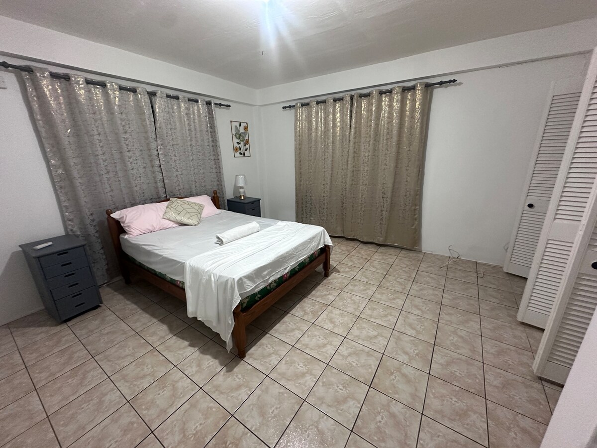 Cozy, family-friendly 1-bedroom apartment in the quiet community of Dunfermline St Andrew, just 15 mins from Grenville. Fully furnished with AC, fans, washing machine and dryer and a spacious layout. Enjoy a large backyard surrounded by trees—perfect for relaxing or letting kids play. Gated with security cameras for peace of mind. A comforting escape in lush, green Grenada. Ideal for short or long stays, with easy access to nearby shops, beaches, and local attractions. Book your stay with us