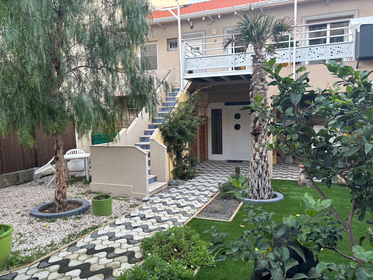 [ Matutuluyang may star⭐️⭐️] Maliwanag at bagong naayos na apartment na may mga de - kalidad na materyales at muwebles Malapit sa dagat, ang base ng kalikasan, ang istasyon ng tren at ang sentro ng lungsod, ang lokasyon nito sa isang tahimik at residensyal na lugar ay mangayayat sa iyo. Hardin na may mga kakaibang note, pergola na may mga swivel blade, posibilidad na iparada ang iyong kotse sa hardin o sunbathe. May kasamang mga kumot at tuwalya nang walang dagdag na bayad, toilet paper at kape.