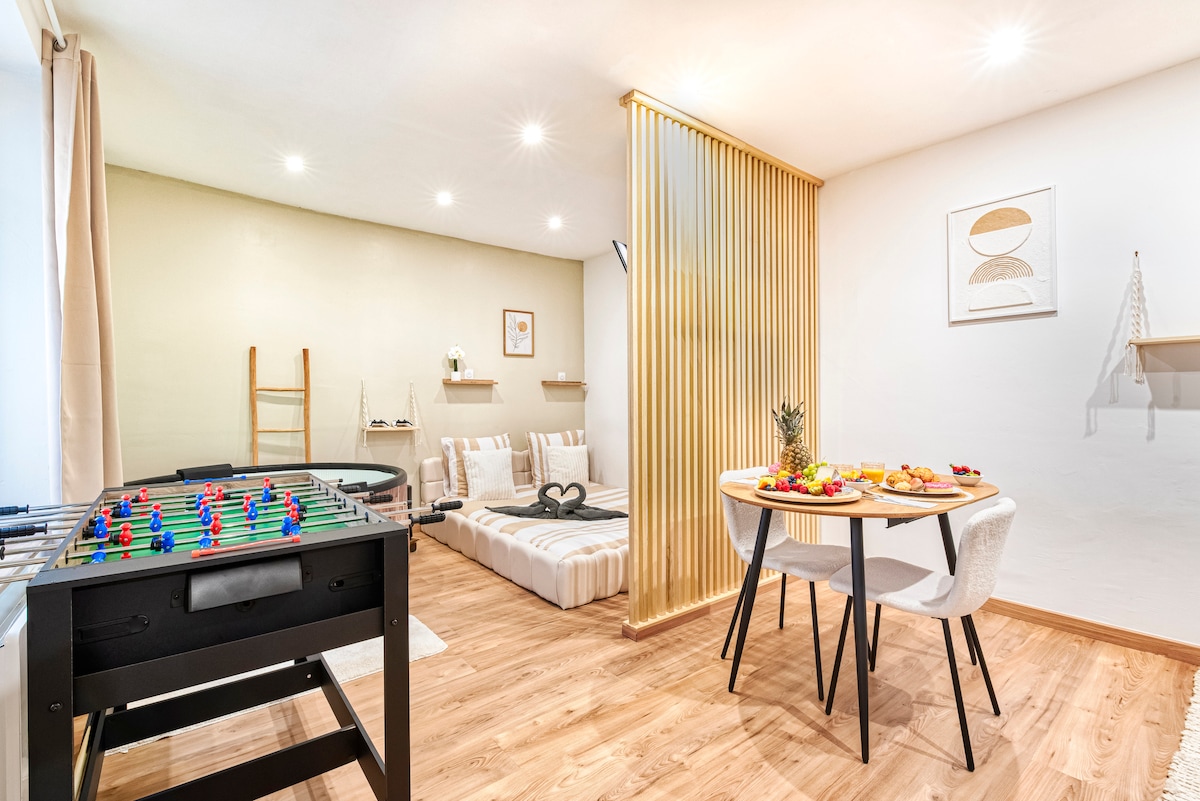 Halika at magrelaks at magkaroon ng walang tiyak na oras sa Love Room "Suite Bali". Matatagpuan ang 45 - square - meter apartment na ito sa city center ng Angers at 1 minutong lakad mula sa Place du Ralliement (main square). Ang napakalaking spa nito, ang walk - in shower nito, ang patyo nito at ang panlabas na sauna nito ay magdadala sa iyo ng isang natatanging sandali ng pagpapahinga sa iyong kalahati. Halika at maglakbay sa Bali Suite.