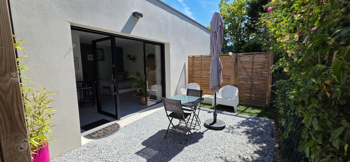 En déplacement professionnel ou personnel, venez séjourner dans notre logement neuf tout équipé. Situé à Saint Barthelemy d'Anjou, vous profiterez du calme et d'un environnement boisé à proximité des commerces et du parc des Expo d'Angers. Nous sommes également à 10 min de Terra Botanica parc du vegetal et 50 min du Puy du Fou. Le studio bénéficie d'un accès privatif sur le côté de notre maison sans aucun vis à vis. Possibilité de garer gratuitement votre véhicule sur la rue principale.