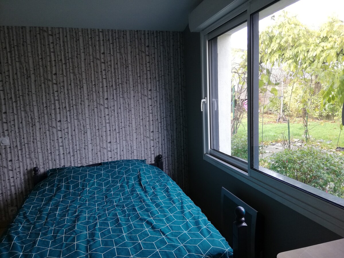 En déplacement professionnel ou personnel, venez séjourner dans notre logement neuf tout équipé. Situé à Saint Barthelemy d'Anjou, vous profiterez du calme et d'un environnement boisé à proximité des commerces et du parc des Expo d'Angers. Nous sommes également à 10 min de Terra Botanica parc du vegetal et 50 min du Puy du Fou. Le studio bénéficie d'un accès privatif sur le côté de notre maison sans aucun vis à vis. Possibilité de garer gratuitement votre véhicule sur la rue principale.