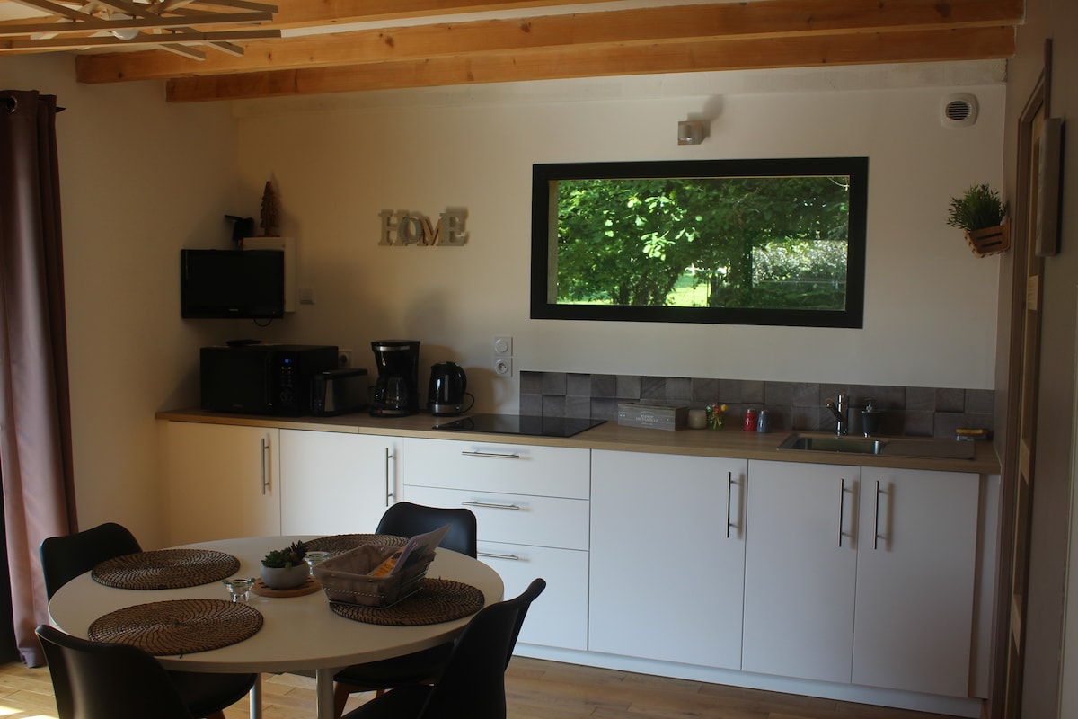 Halika at makatakas kasama ang iyong iba pang kalahati sa aming kaakit - akit na gite para sa mga mahilig, pinalamutian nang elegante at ganap na pribado na may hiwalay na pasukan. Nilagyan ito ng lahat ng modernong kaginhawaan, na may king size bed, pribadong hot tub, buong kusina, at relaxation area. Tumira sa pamamagitan ng apoy para sa romantikong gabi ng taglamig, sa tag - araw maaari mo ring tangkilikin ang malaking terrace. Matatagpuan 1 km mula sa Quintin, 3rd favorite village ng French sa 2022 at 15 minuto mula sa dagat