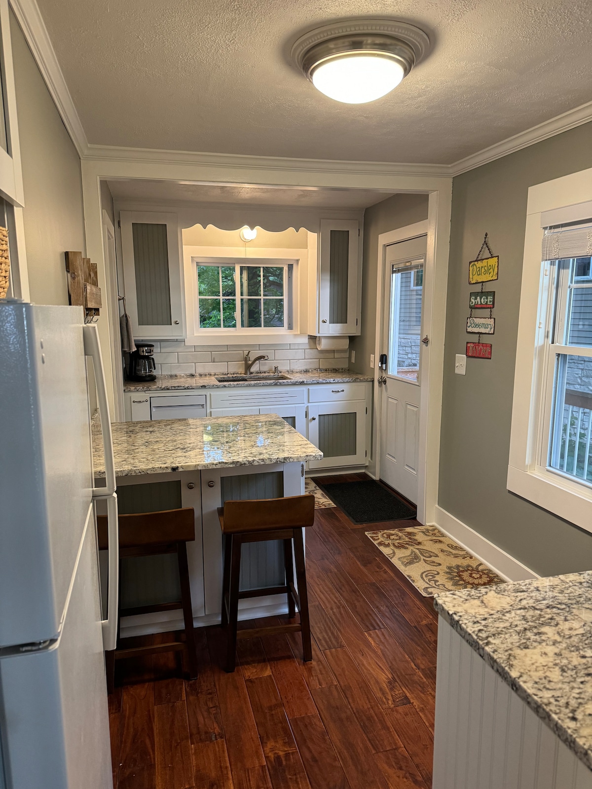 A two-bedroom apartment above Getaway Motor Cafe in historic downtown Carver, MN. Built in 1871, carefully restored, and designed with a Nordic Modern warmth that makes you want to stay a little longer. Jøtul fireplace, gourmet kitchen, private balcony over the creek, and a cafe downstairs for morning coffee and evening cocktails. Sleeps 4. Small-town charm, miles of trails. Come rest.