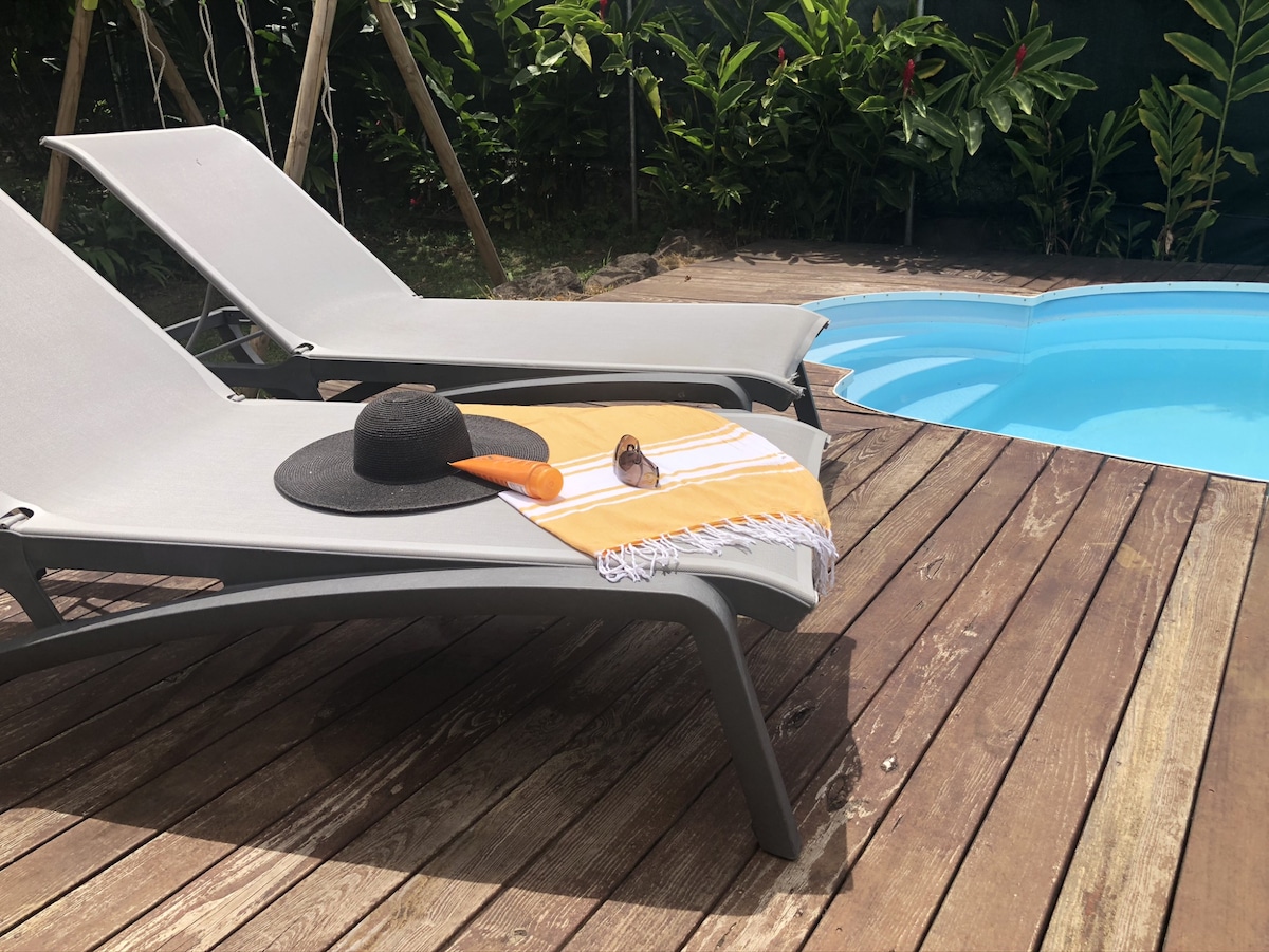 T2 avec piscine vue mer, campagne et soufrière