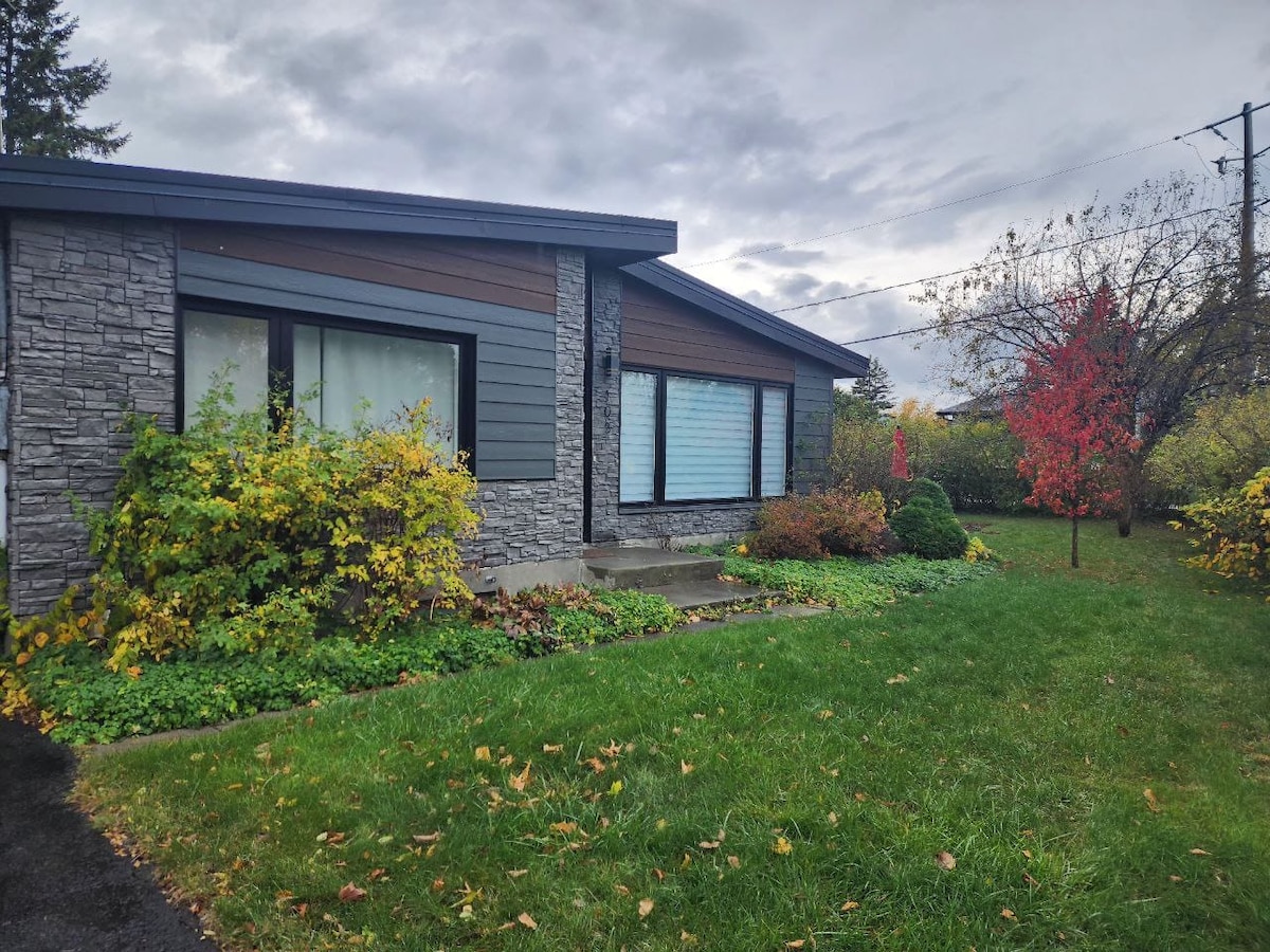 Makikita sa isang magandang tahimik at ligtas na lugar na tirahan sa gitna ng laval. Matatagpuan ang tuluyan na may posibilidad na 2 silid - tulugan sa basement ng bahay. Ito ay napaka - liwanag na may pribadong pasukan,napakahusay na kagamitan at napakalinis. Perpekto para sa tahimik na pamilya. 5 minuto mula sa Place Bell, Centre Laval 3 minuto mula sa istasyon ng metro ng Cartier at sinehan ng Guzzo Malapit sa ilang restawran (TIM HORTONS, MCDONALD, SUBWAY, SUBWAY, PIZZERIA, DOMINO PIZZA), mga grocery store, mga botika. Hindi kasama ang paradahan.
