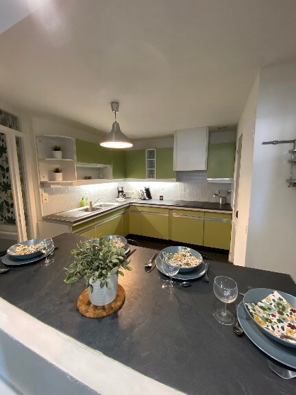 F3 atypical furnished sa ikatlo at tuktok na palapag ng isang bourgeois na gusali ng XIX° na inayos, na matatagpuan sa pagitan ng istasyon ng tren at ng sentro ng lungsod. Walang elevator sa gusali. Aabutin lang nang 10 minuto ang paglalakad para makarating sa makasaysayang sentro ng lungsod. 20 metro ang layo ng bus stop; maraming kalapit na restawran at negosyo.