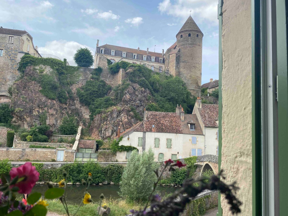 Ang La % {bold ay isang kaakit - akit na nestling sa cottage sa ibaba ng mga talampas at tore ng katangi - tanging medyebal na bayan ng Semur - en - Auxois. Nakaupo sa tabi ng Armancon River, maaari kang umupo, hindi nakikita ng mga dumadaan, sa balkonahe na may isang baso ng alak, nanonood sa mga duck at nakikinig sa mga malumanay na tunog ng tubig, na may mga waterlilies na lumulutang sa ibaba mo.