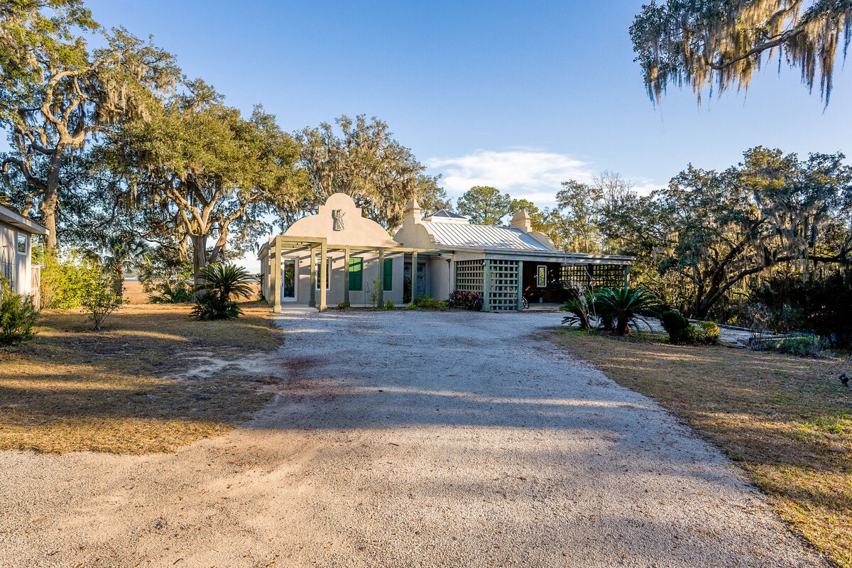 Romantic cottage on three-acres surrounded by gorgeous South Carolina waterways with endless views on all sides! Cottage is dog-friendly, has a fully-fenced front yard and screened-in porch. Full kitchen, private parking, washer & dryer, 55" TV with DirecTV. A short 10 minute drive from Hunting Island State Park, and 20 minutes to Downtown Beaufort and all the major attractions. Cottage is beautifully furnished with custom pieces to make this your ultimate low country luxury getaway!