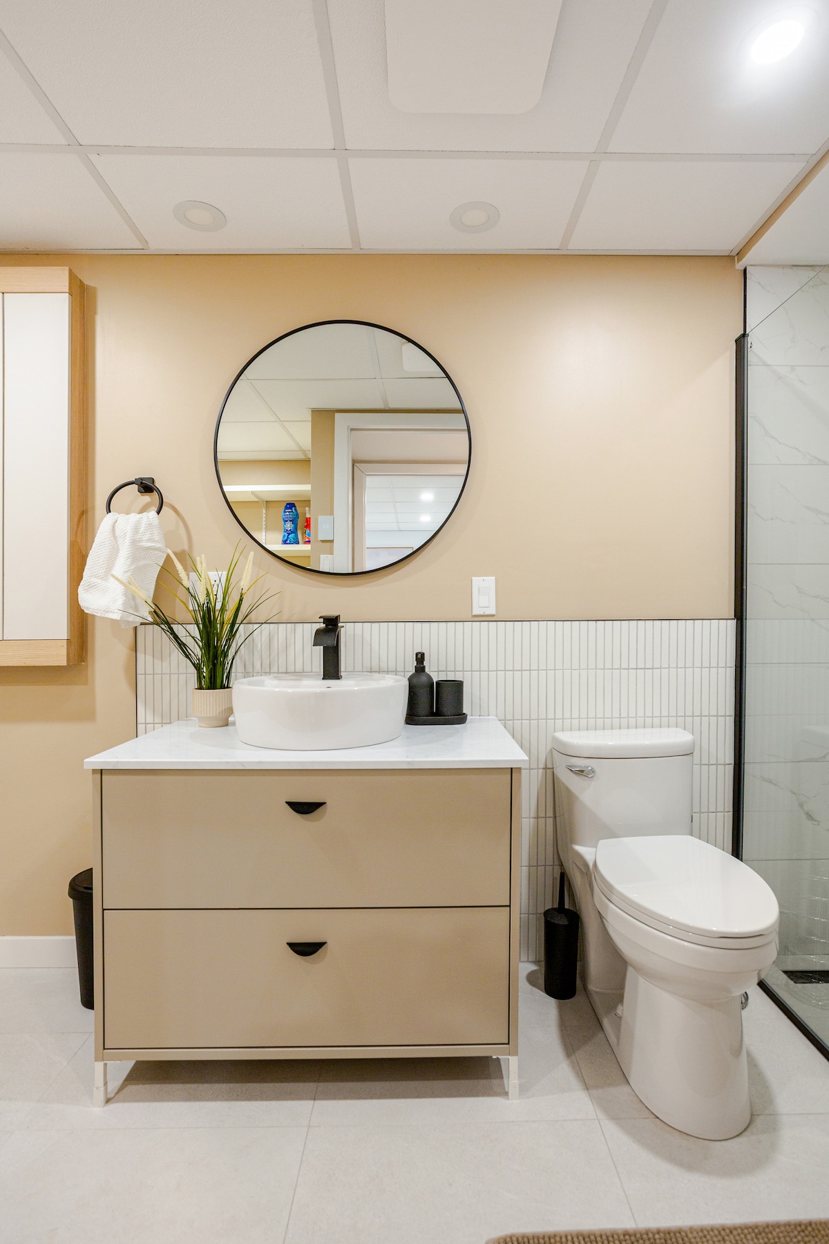 Escape to Montreal to a stylish suite! Nothing in pics here is shared with others 🔐 + Your private entrance🚪 Relax in the spacious living room on smart big-screen 📺 Sleep in a comfortable queen bed 🛏️ All nestled in basement-suite in a quiet street 💤 By car 🚙 15 min to downtown Montréal 6 min to REM Panama station and Mall Champlain 5 min to DIX30 Mall By foot🚶🏻🚶🏻♀️ 12 min Grocery Store Free street parking 🅿️ Washer/dryer included 🧺 Diverse dining 🍽️ options mins away. Book your retreat today : )