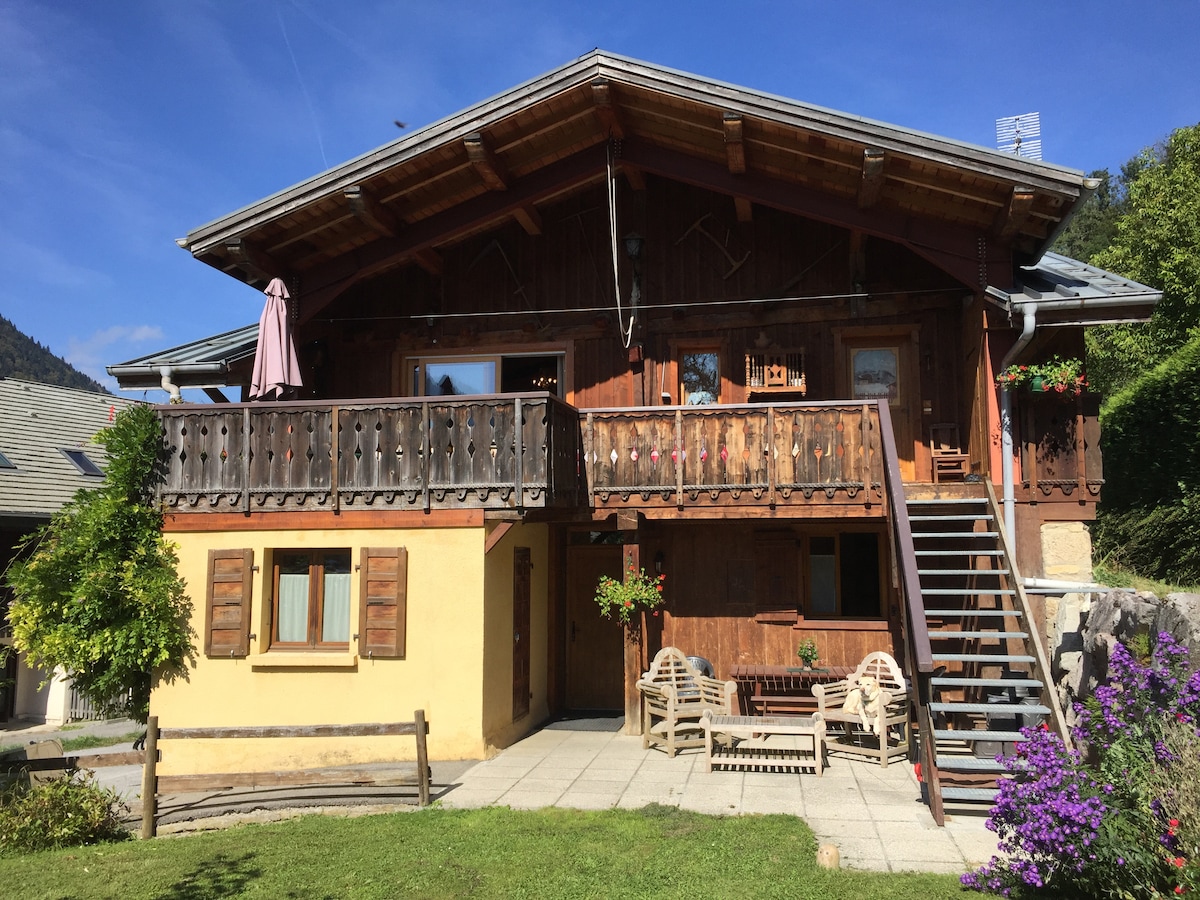 Isang 277 taong gulang na farmhouse ang Chalet Les Glycines na nasa gitna ng St Jean d'Aulps, isang payapang alpine village sa France. Ito ay isang minutong lakad papunta sa mga bar at restaurant kabilang ang Le National pub, ang pinakamahusay na pub sa lambak. Nag - aalok ang chalet ng malaking self - contained na unang palapag na apartment na may mezzanine at malaking fireplace. Mainam ito para sa 2 pamilya o 3 magkasintahan o 8 kaibigan. Kumukuha lang kami ng mga booking sa linggo na magsisimula sa Sabado. Kailangan mong umakyat sa isang hanay ng mga hagdan para ma - access ang chalet.