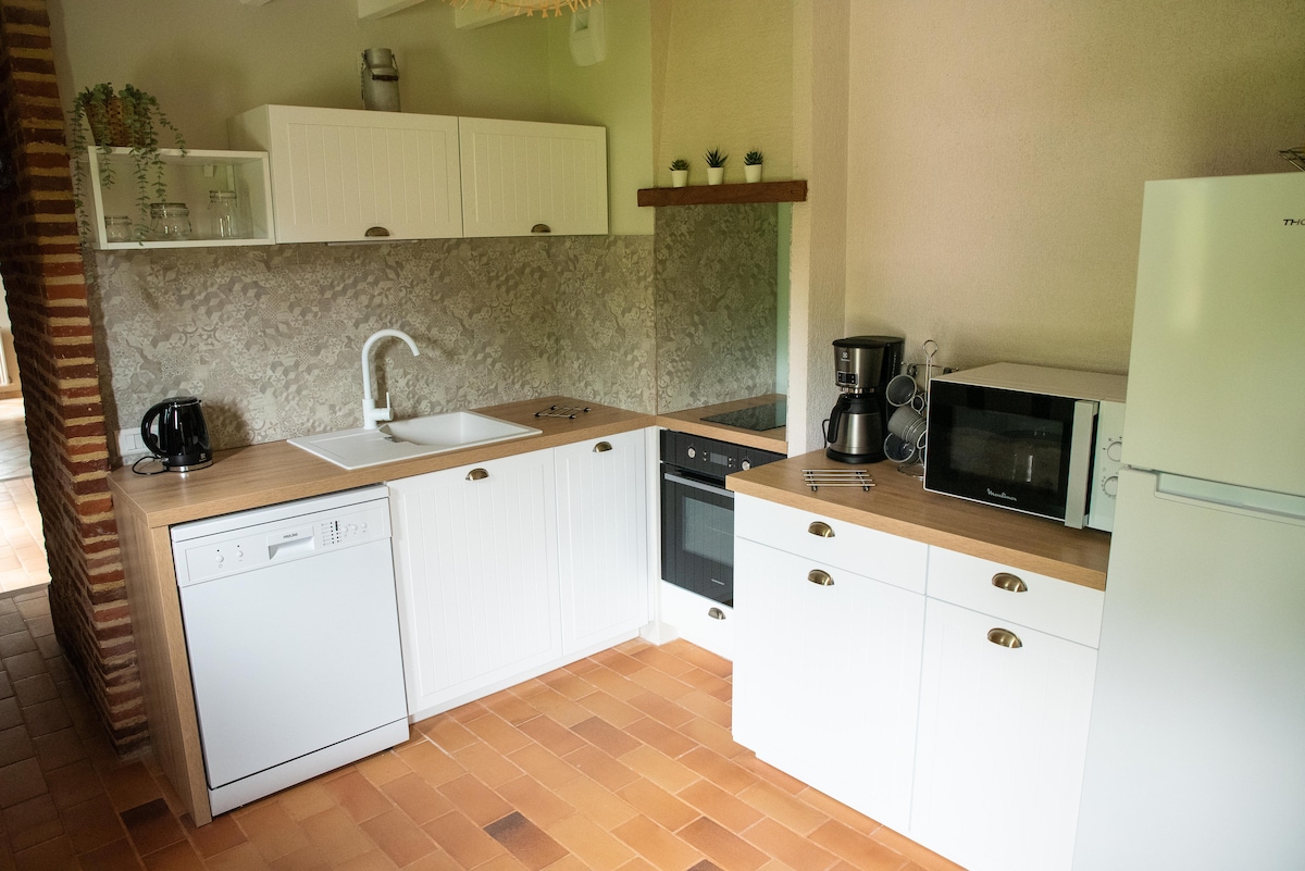 Ang La Lanterne ay isang maliwanag at puno ng liwanag na cottage na parang loft (50 m2) na matatagpuan sa Normandy, sa isang magandang bakuran ng isang malaking bahay sa pampang ng Seine sa Tournedos-sur-Seine (isang tahimik na nayon na apat na km mula sa Le Vaudreuil/Val-de-Reuil). Kamakailan lang nilagyan ng muwebles ang bahay at kumpleto ang kagamitan nito. Dalawang malalaking kuwarto na may open plan na kusina, silid-tulugan na may double bed na king size, sofa, at desk. Pribadong banyo na may walk - in shower. Mararangyang dekorasyon. Mapayapa at kaakit - akit na malapit sa kalikasan na kapaligiran.