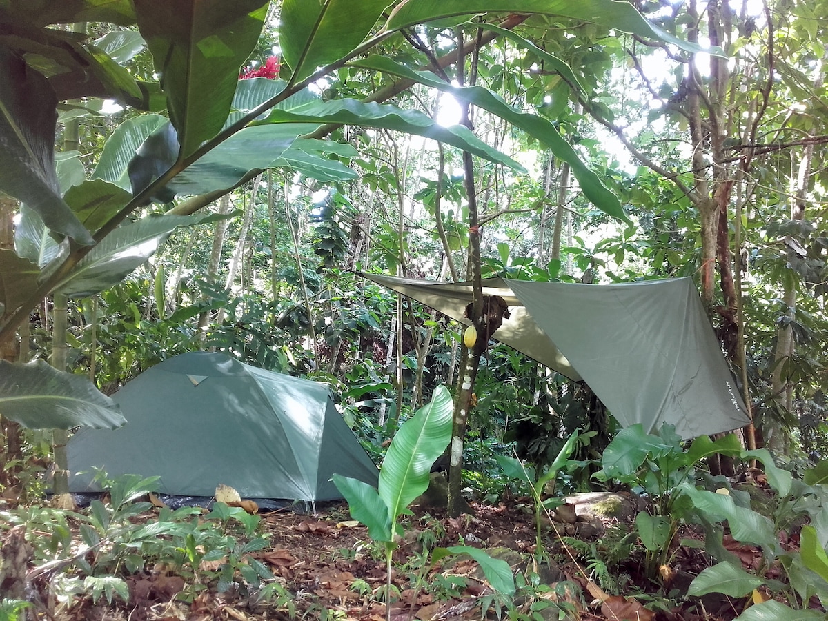 Isang rainforest perch kung saan matatanaw ang botanikal na paraiso at papunta sa Dagat Caribbean. Isang liblib na bakasyunan na may organikong lumago na ani at isang artisan na essential oil distillery. Makaranas ng kaakit - akit na araw at mga buwan, pagkakaiba - iba ng ibon at bulaklak, mga lilly pond at kambing. Ang solar powered cabin ay may mga kaginhawaan ng isang ensuite hot shower at high speed internet. May isang full sized bed at isang single bed. Maluwag ang verandah na may mga lounging chair at duyan. Buong kusina at pavilion ng kainan