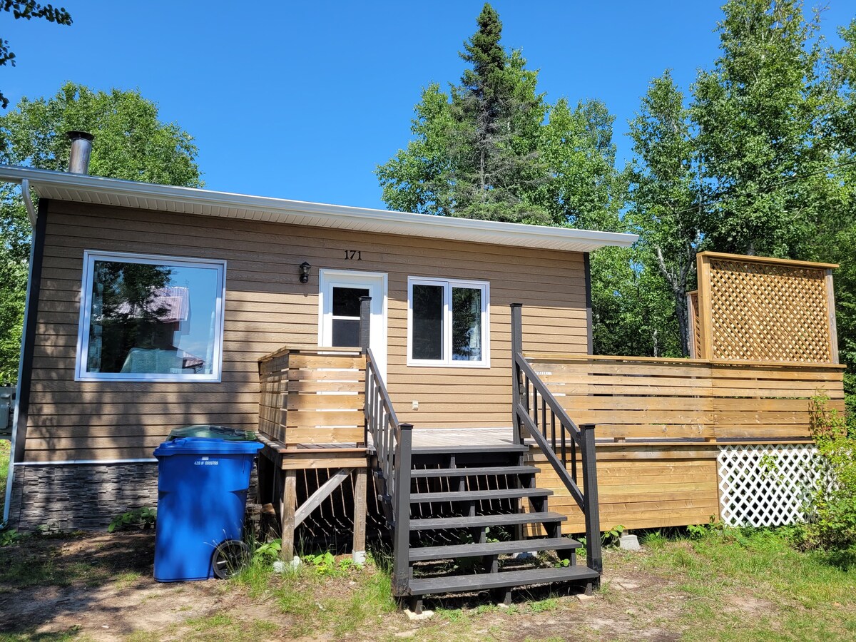 Situé sur les abord du majestueux lac st- jean, Venez profiter de notre petit chalet fonctionnel et au goût du jour. Avec une vue incroyable sur le lac st-jean et un accès direct à une plage privée , vous serez charmé à coup sûr! Vous aurez accès à Internet, netflix, des jeux , et pleins de jouets pour les enfants. Le chalet est entièrement équipé . Vous apporter vos effets personnel et votre épicerie .