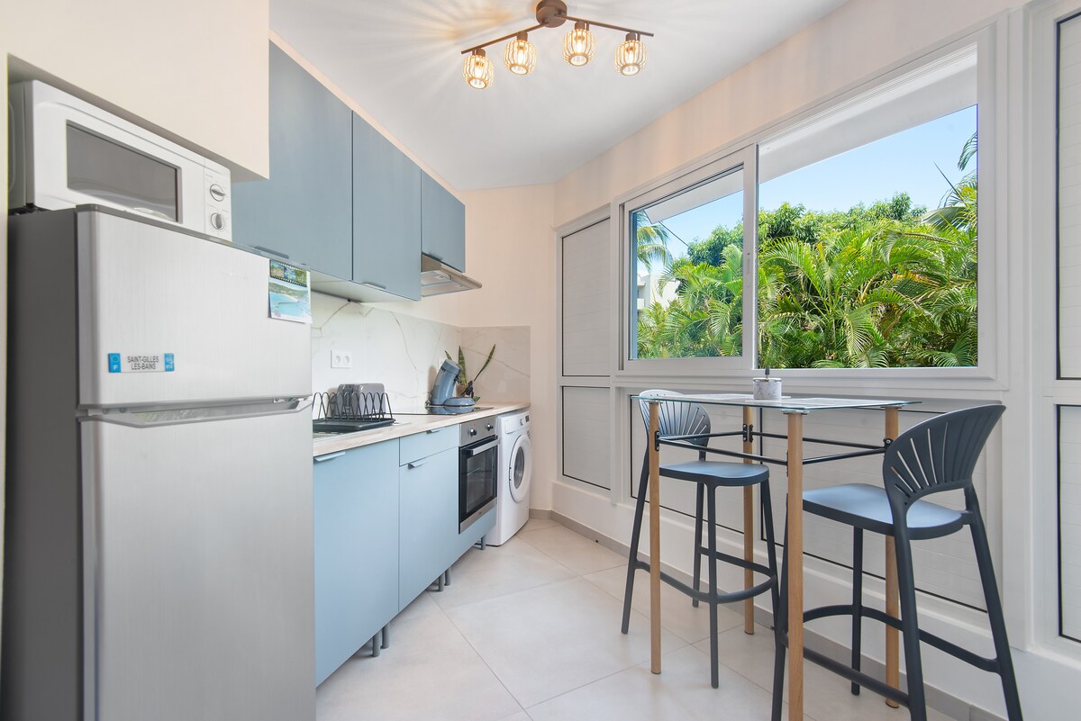 Blg. 97415 - MT -20A038 Sa pagitan ng dagat at bundok, sa resort sa tabing - dagat ng Saint - Gilles - les - Bains sa Boucan canot, tuklasin ang kaakit - akit, maliwanag at mapayapang one - bedroom na ito, na matatagpuan sa isang berde, gated at ligtas na tirahan na may video surveillance. 7 minutong lakad lang ang layo mula sa tabing - dagat at sa beach, masisiyahan ka sa musikal na kapaligiran sa katapusan ng linggo, sa magandang beach ng Boucan Canot at sa tanging natural na swimming pool sa West at sa kalapit na mga waterfalls.