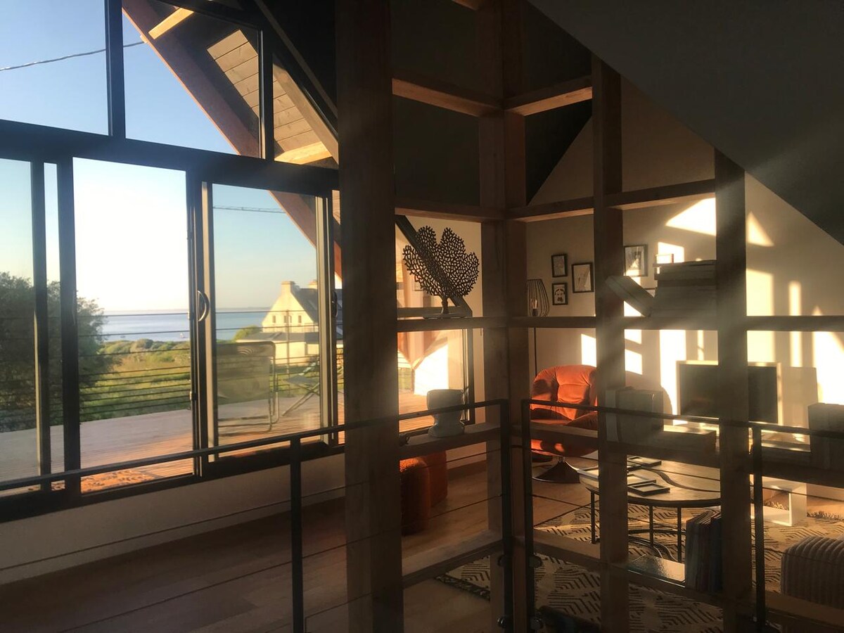 Maligayang pagdating sa Kerhostin, kung saan ang kalmado ng karagatan ay nahahalo sa init ng isang magiliw na tahanan.<br>Ang aming 140 m2 sea - view holiday house, na matatagpuan sa isang 385 m2 plot, ay nag - aalok ng isang mapayapang kanlungan para sa 6 na tao, na matatagpuan sa dulo ng isang cul - de - sac, 100 metro lang mula sa Blue Beach.<br> <br> Maligayang pagdating sa isang piraso ng paraiso! <br> <br><br>- 2 Parking Spaces: Ang iyong kaginhawaan ay ang aming priyoridad, na may madaling access sa iyong sasakyan.