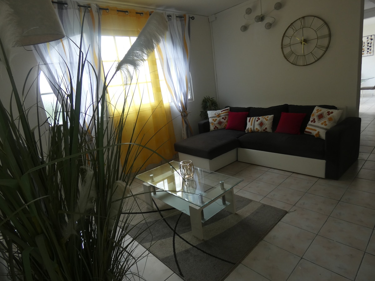 Matatagpuan sa isang napaka - tahimik na tirahan kung saan matatanaw ang Bay at ang lungsod ng Saint Pierre, na may magagandang tanawin ng dagat, ang aming villa ay 5 minuto mula sa pinakamalapit na beach at mga tindahan, 10 minuto mula sa Martinique Zoo, 10 minuto mula sa mga diving site, 15 minuto mula sa sikat na Neisson distillery, at 30 minuto mula sa peeled mountain (mga pagsakay sa kotse). Ang pribadong saltwater pool (3MX3M) at isang bahay na may kumpletong kagamitan at naka - air condition ay nangangako sa iyo ng hindi malilimutang pamamalagi!