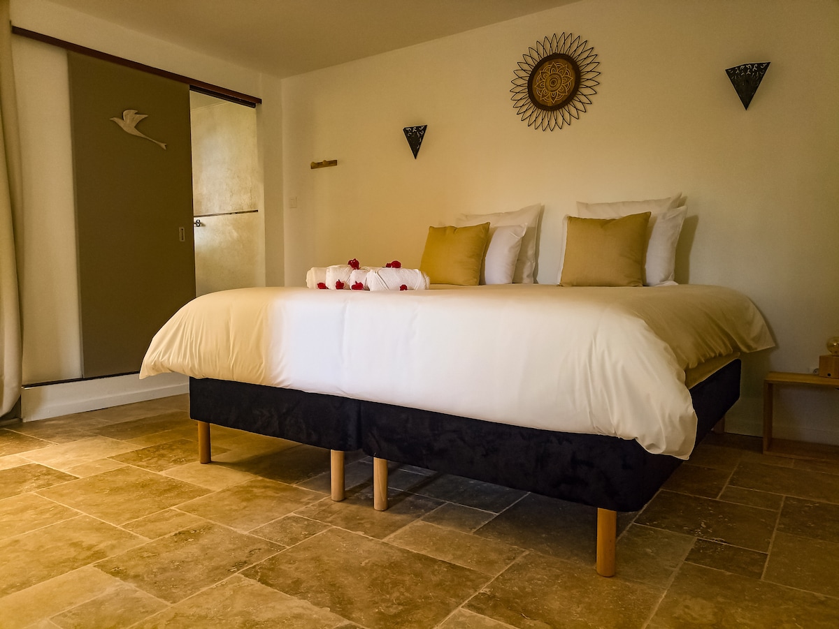 Ang Mamzelle Sega ay isang kaakit - akit na 4 - star na 67 m² cottage, na may dalawang king - size na silid - tulugan, dalawang shower sa labas, isang banyo na may bathtub at kusina na kumpleto sa kagamitan. Nag - aalok ang tropikal na hardin nito ng mga deckchair, higaan, Balinese gazebo, barbecue at pribadong heated bubble pool mula Hunyo. Matatagpuan sa timog ng isla, 5 minuto mula sa beach at mga tindahan, perpekto ito para sa pagtuklas sa ligaw na South. Mapayapang lugar, mainam para makapagpahinga.
