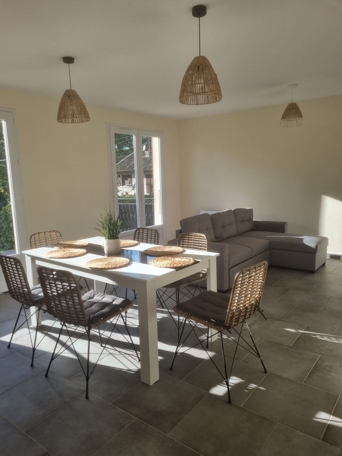 Tuluyan na kayang tumanggap ng 4 na tao (isang silid - tulugan na may double bed at 140cm B Z sa sala). Nilagyan ng kusina (microwave, induction stove, refrigerator), banyo na may toilet at shower. May kasamang mga linen (sapin at tuwalya). Tsaa at kape sa iyong pagtatapon. Terrace na may mga kasangkapan sa hardin at BBQ. Libreng paradahan. Mahigpit na ipinagbabawal na manigarilyo sa loob ng bahay, sigarilyo o kasukasuan. Nalalapat ito sa iyong mga pagpapaalis.