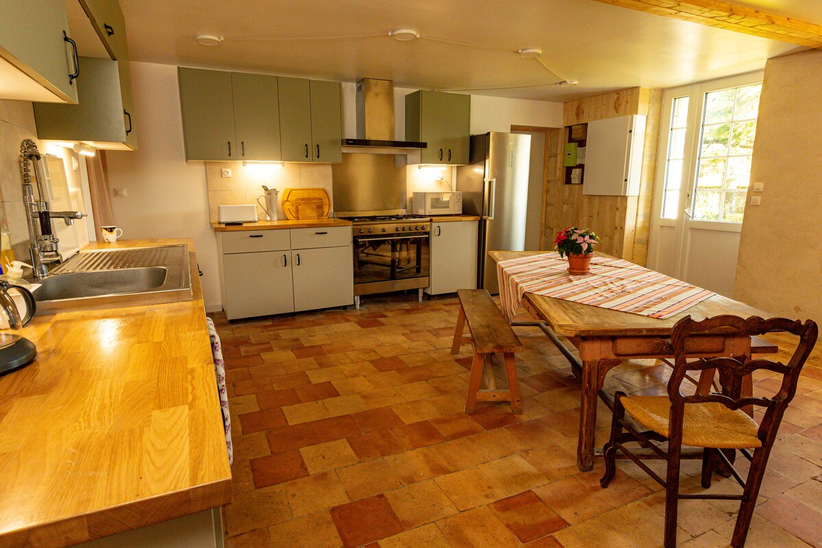 Bahay sa kanayunan na may perpektong lokasyon para sa pagtuklas sa rehiyon ng Bordeaux. Gite na may dalawang silid - tulugan at mezzanine na maaaring kumilos bilang ikatlong silid - tulugan , kusina/silid - kainan, sala at mezzanine kung saan may lugar ng laro at pangalawang sulok/TV. Isang pribadong nakapaloob na hardin. Ang dagdag: ang natatakpan na terrace na protektado ng araw o ulan!!