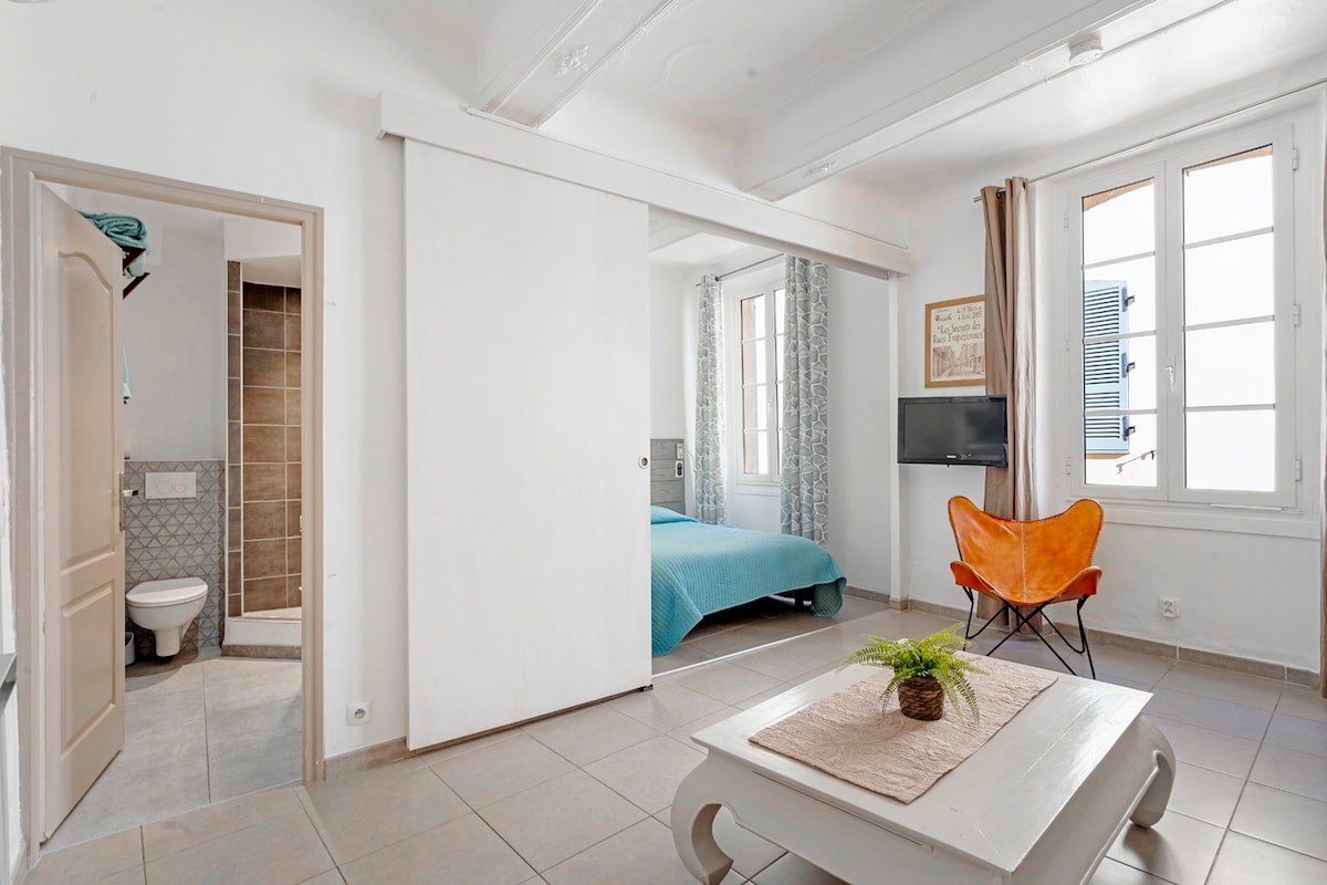 Studio hotel room - 20 m²- Pambihirang lokasyon sa Saint - Tropez Matatagpuan sa gitna ng Old Village, sa paanan ng sikat na Clocher de Saint - Tropez at isang bato lang mula sa daungan at La Ponche beach, mainam na matatagpuan ang studio na ito para sa pagtuklas sa Saint - Tropez nang naglalakad. Iniaalok ng Shellter Rentals, ganap na na - optimize ang apartment na ito noong 2025 ng lokal na arkitekto. Idinisenyo bilang 5* kuwarto sa hotel, nag - aalok ito ng mataas na antas ng kaginhawaan at kagamitan.