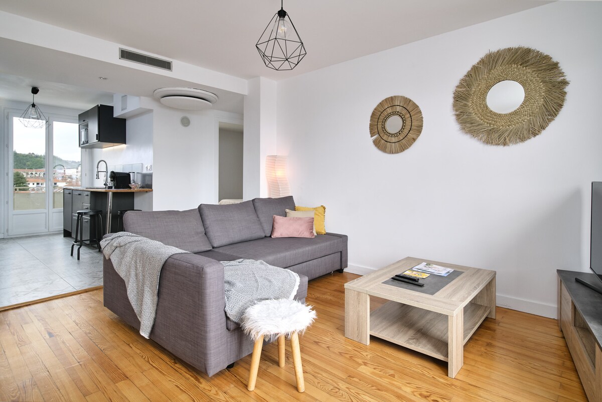 Maluwag , elegante at sentral.... Isang bagong inayos na maliit na cocoon na magbibigay - daan sa iyo na mamuhay sa Vienna ayon sa iyong mga hangarin... sa pagitan ng paglalakad, mga tuklas at mabuting pamumuhay Sa gitna ng aming magandang lungsod... 150 m mula sa istasyon ng tren 250 m mula sa Katedral 3 minutong lakad papunta sa Jardins de Cybèle at 5 minutong lakad papunta sa Temple Theatre Wala pang 10 minuto para sa lahat ng gastro at festive spot sa Vienna.. Lyon Confluence 25 minuto at paliparan 40 minuto sa pamamagitan ng kotse Lyon center 15 min. tren