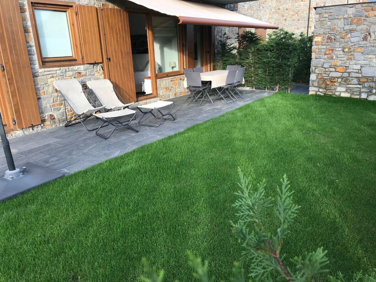 Inuupahan ito ng komportableng ground floor sa Osseja, sa gitna ng French Cerdaña. Ang bahay ay may dalawang silid - tulugan, isang maluwang na sala na may fireplace, isang kumpletong kusina, at isang modernong banyo. Ang malaking draw ng lugar na ito ay ang pribadong hardin nito, na perpekto para sa pag - enjoy sa panlabas na kainan, lounging o paglalaro kasama ng mga bata. Bukod pa rito, nag - aalok ang residential complex ng communal area na may pool at maluluwag na hardin, na mainam para sa pagrerelaks sa tag - init. May kasamang parking space.