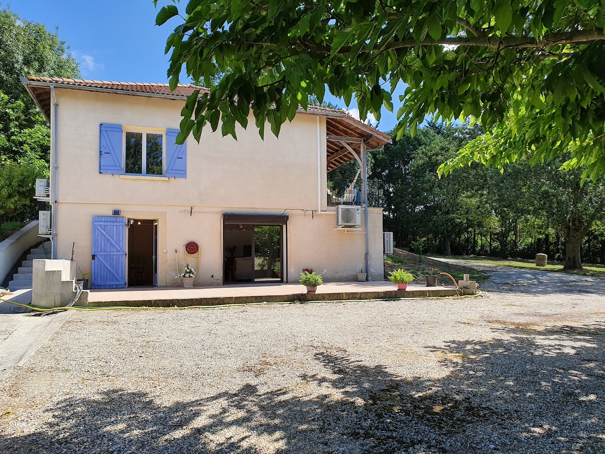 Matatagpuan sa pagitan ng Lectoure at Astaffort, apartment sa ground floor ng bahay ng mga may-ari, malaya, mahusay na insulated at naka-air condition. Kusinang kumpleto sa gamit, sala, TV at WiFi; 2 kuwartong may 160 higaan, isa na may bintana at isa na walang tanawin ng sala; banyong may bathtub, toilet, at washing machine. Posibilidad ng karagdagang kama; Malaking terrace at may kulay na green space na may mesa. 12 km mula sa Lectoure, municipal swimming pool, tennis, spa, hiking trails, sinehan at Friday market