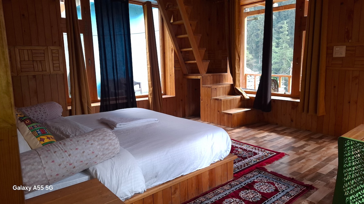 Get away from it all when you stay under the stars. What You’ll Love - ★ Close to nature ★ Cozy master bedroom and Balcony ★ Attic with second bed ★ Beautiful wooden architecture ★ Wi-Fi ★ Delicious in-house food service ★ Garden with bonfire area Please note - - Breakfast, meals, room heaters, bonfire, and other services are charged separately and are not included in the stay price. - Please note, there is 100 meters trek from parking spot to the property. We will pick your luggage.