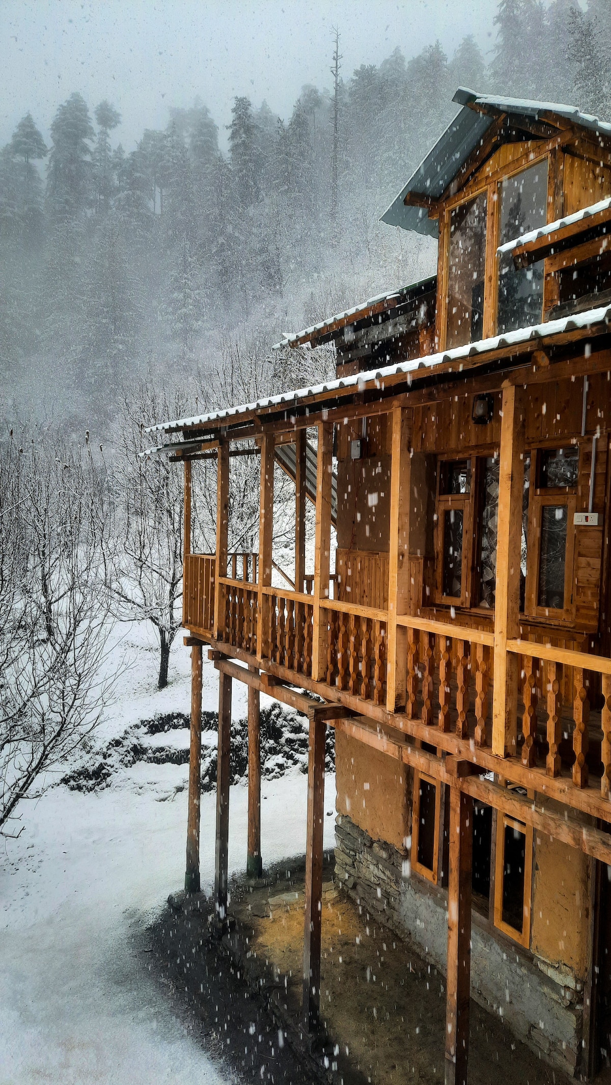 * Relax with the whole family at this peaceful place to stay. a wooden cottage in the middle of mountain with a spectacular view * there's a spacious bedroom, and an attic which function as a bedroom * bone fire 500/- * Broadband Wifi free * our cottage is in one of the most beautiful spots in the town. * Every single guest who stayed with us left happy. * there's a 700 meter trek, hut 99% of the young adults can make it.