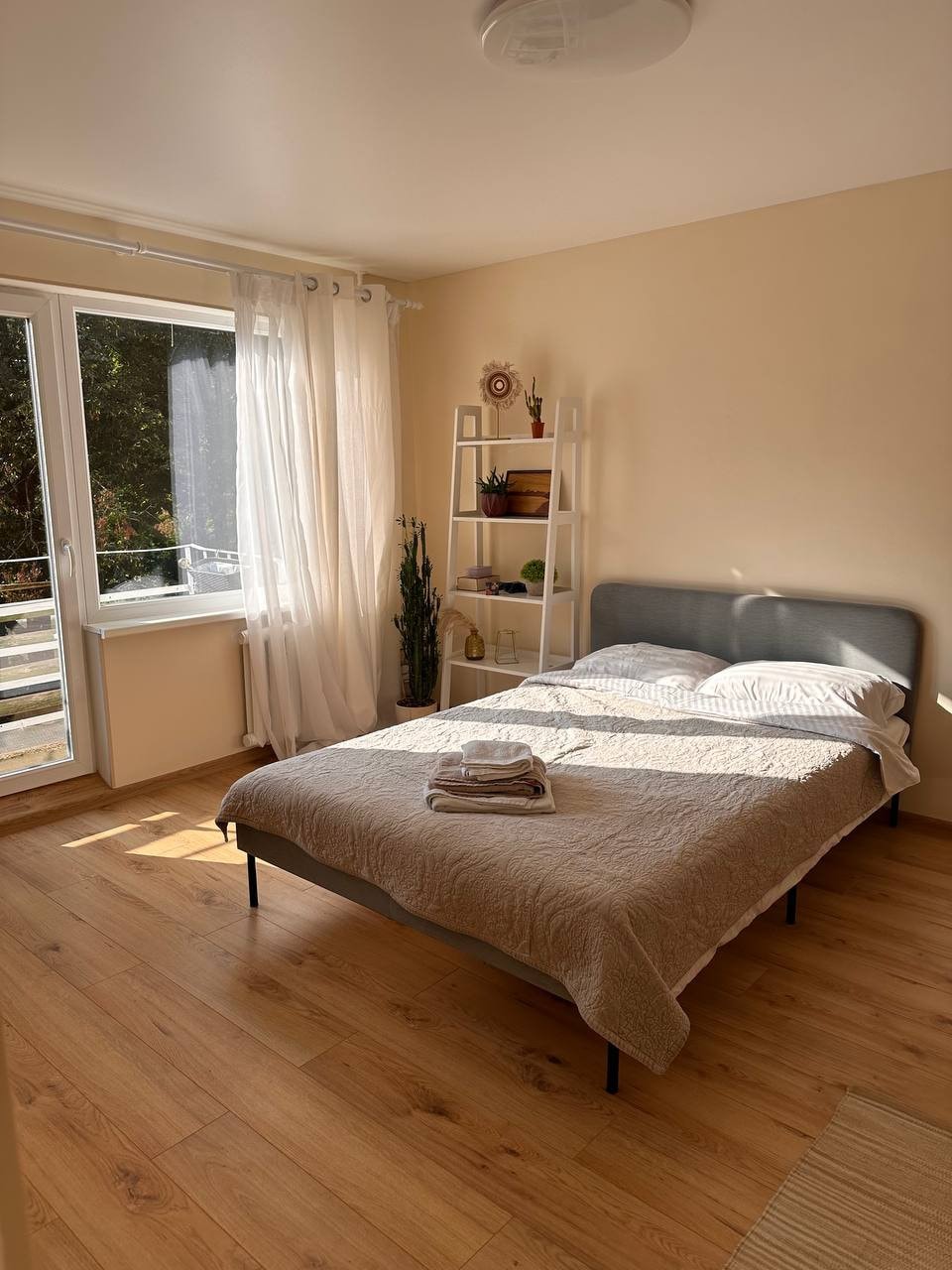 Take it easy at this unique and tranquil getaway. A cosy apartment for your stay located on 2nd floor. You can have a walk near the lake or to the forest (1 min.on foot). There is also a facility for active recreation available: outdoor exercise equipment, a trampoline, swings (10 minutes on foot). A grocery store, public transport stop, children playground (1 min.on foot).