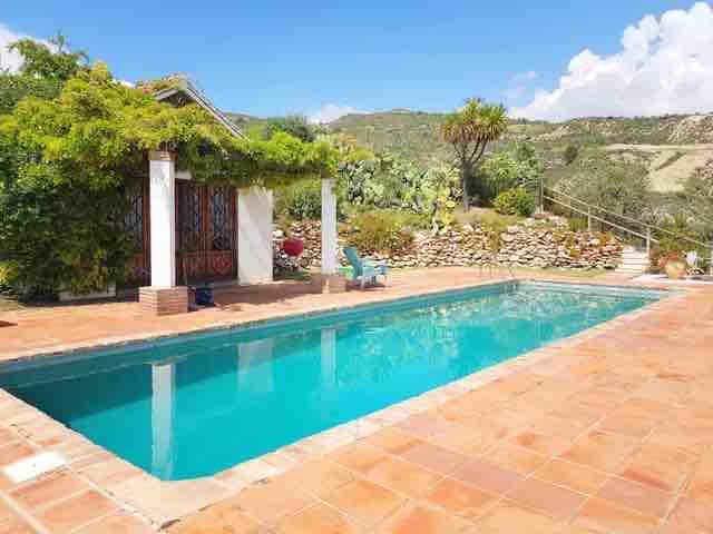 In the heart of nature in the Rio Torrente valley , the cortijo borders the Sierra Nevada Natural Park. Pool with fabulous mountain views. Within 5 mins walk of the picturesque ´slow´ village of Niguelas. Aguas Calmas lies between two traditional acequias (water-courses). Superb walking tracks lead into the mountains. Perfect base for Granada, beaches, Alpujarra and skiing. Great weather all year round. Paradise for hiking, cycling, gastronomy, lazing around pool or remote working. Great WiFi.