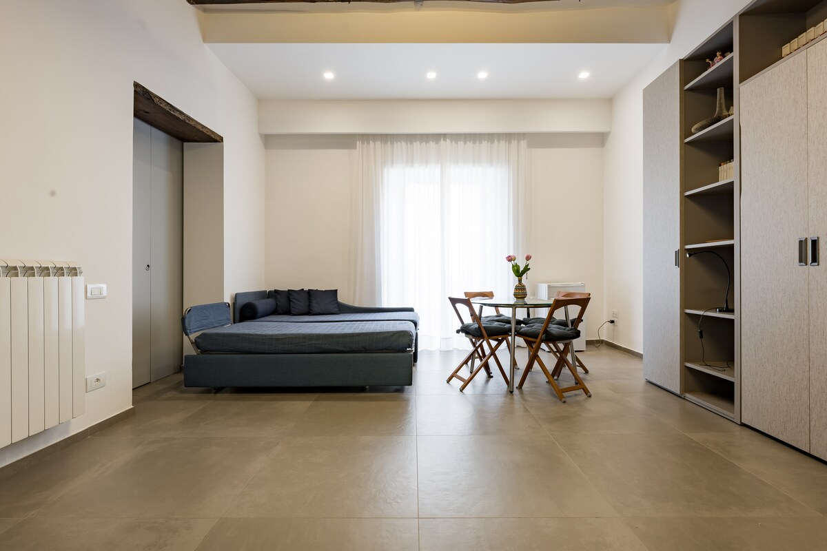 Ang Olympia ay isang apartment na may kahalagahan sa kasaysayan na inayos at ibinalik para protektahan at pagandahin ang orihinal na kapaligiran. Ang privileged at nangingibabaw na posisyon, malapit sa mga pangunahing atraksyon ng turista at kultura ng Old Town, ay nagbibigay - daan sa iyo upang humanga sa Amalfi Coast at sa dagat mula sa malawak na mga bintana. Ang double bedroom at ang single sofa - bed sa sala ay maaaring tumanggap ng hanggang 3 tao. Ang Julius Studio ay bahagi ng Trotula Charming House at kayang tumanggap ng hanggang 6 na tao.