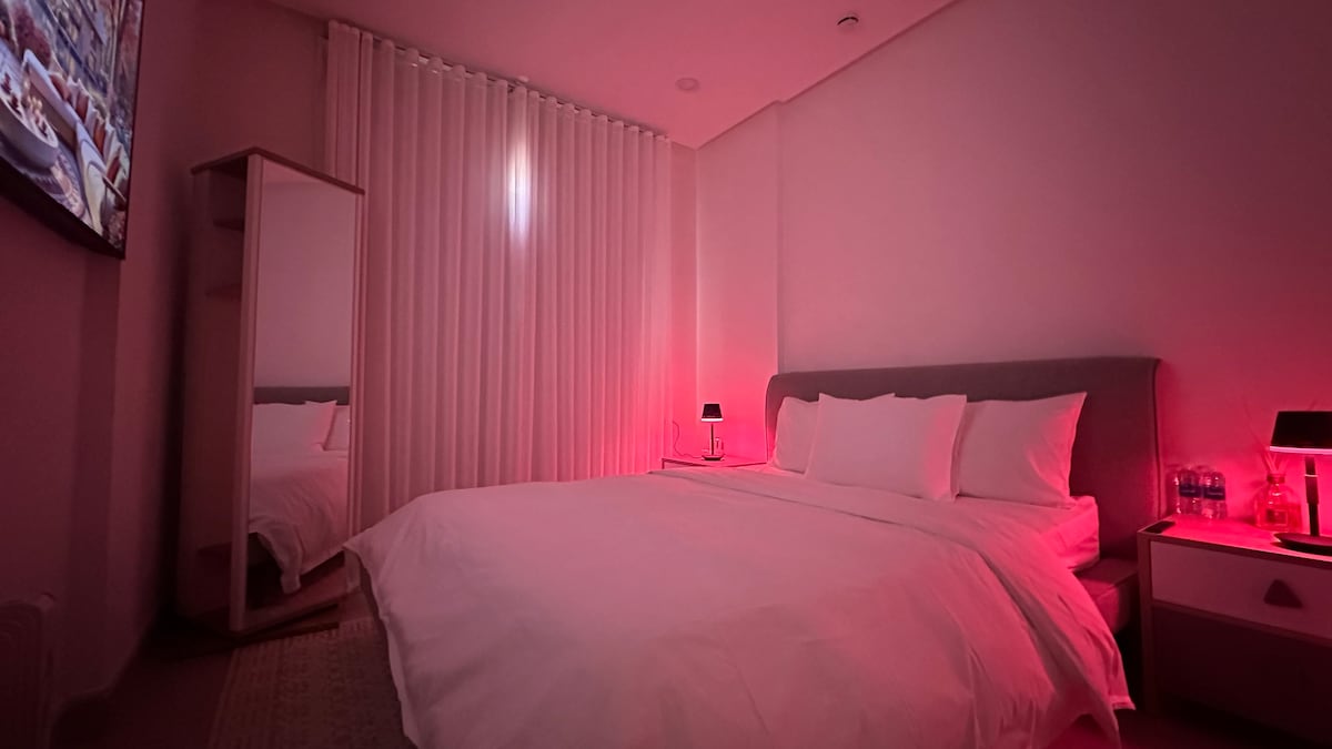 Ano ang mood mo ngayon!Magrelaks lang sa apartment na may kumpletong kagamitan sa Happy Nest! Damhin ito ..Magugustuhan mo ito 😍 ………………………. 👉🏼 PS5 console na may Mga Sikat na laro 👉🏼Philips ambient lighting para sa nakakaengganyong karanasan 👉🏼 5G Ultra speed WiFI 👉🏼Bein sports na may ultimate package 👉🏼65" 4K Samsung QLED TV na may Netflix, Amazon Prime, OSN 👉🏼65" LG 4K TV sa silid - tulugan